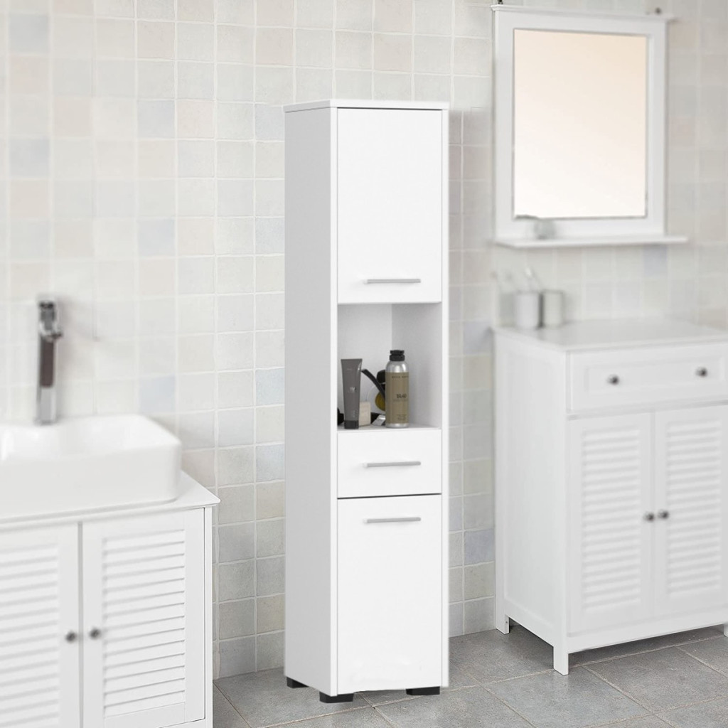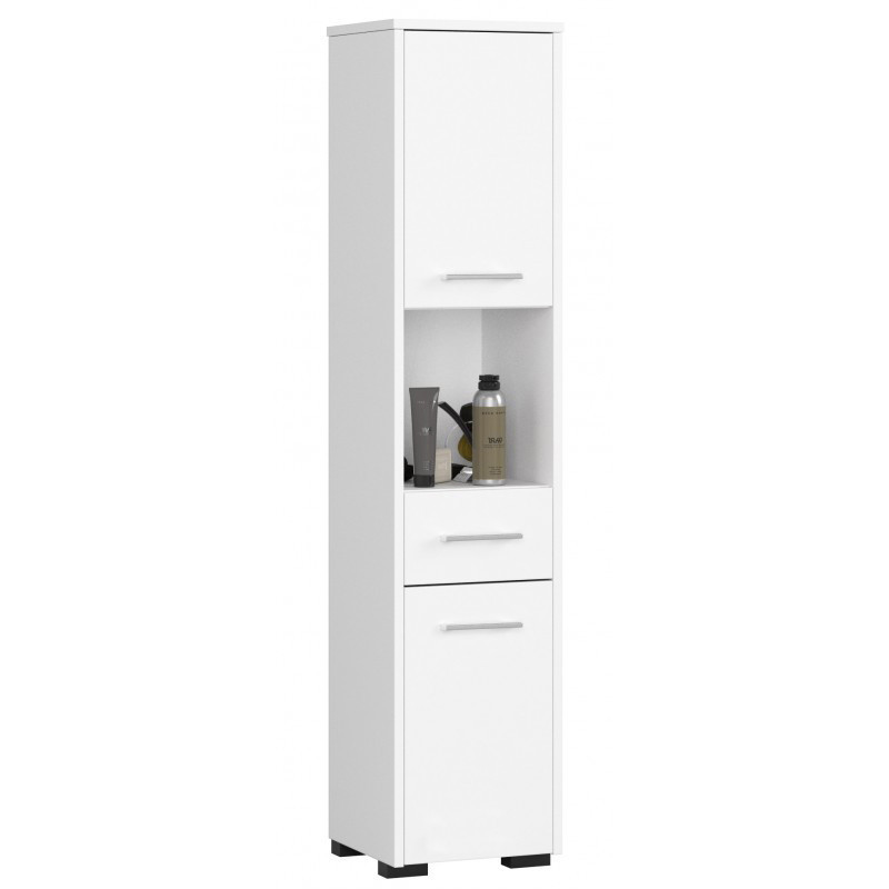Táto skrinka so zásuvkou, vrchnou a spodnou časťou je ideálna na uloženie kúpeľňových potrieb. Vďaka kompaktnému prevedeniu perfektná do úzkych priestorov.