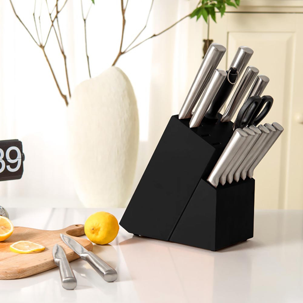Táto 16-dielna sada nožov pokrýva všetky kuchynské úlohy: krájanie, šúpanie, sekanie a ďalšie. Elegantný drevený blok môže byť aj dizajnovým doplnkom vašej kuchyne.