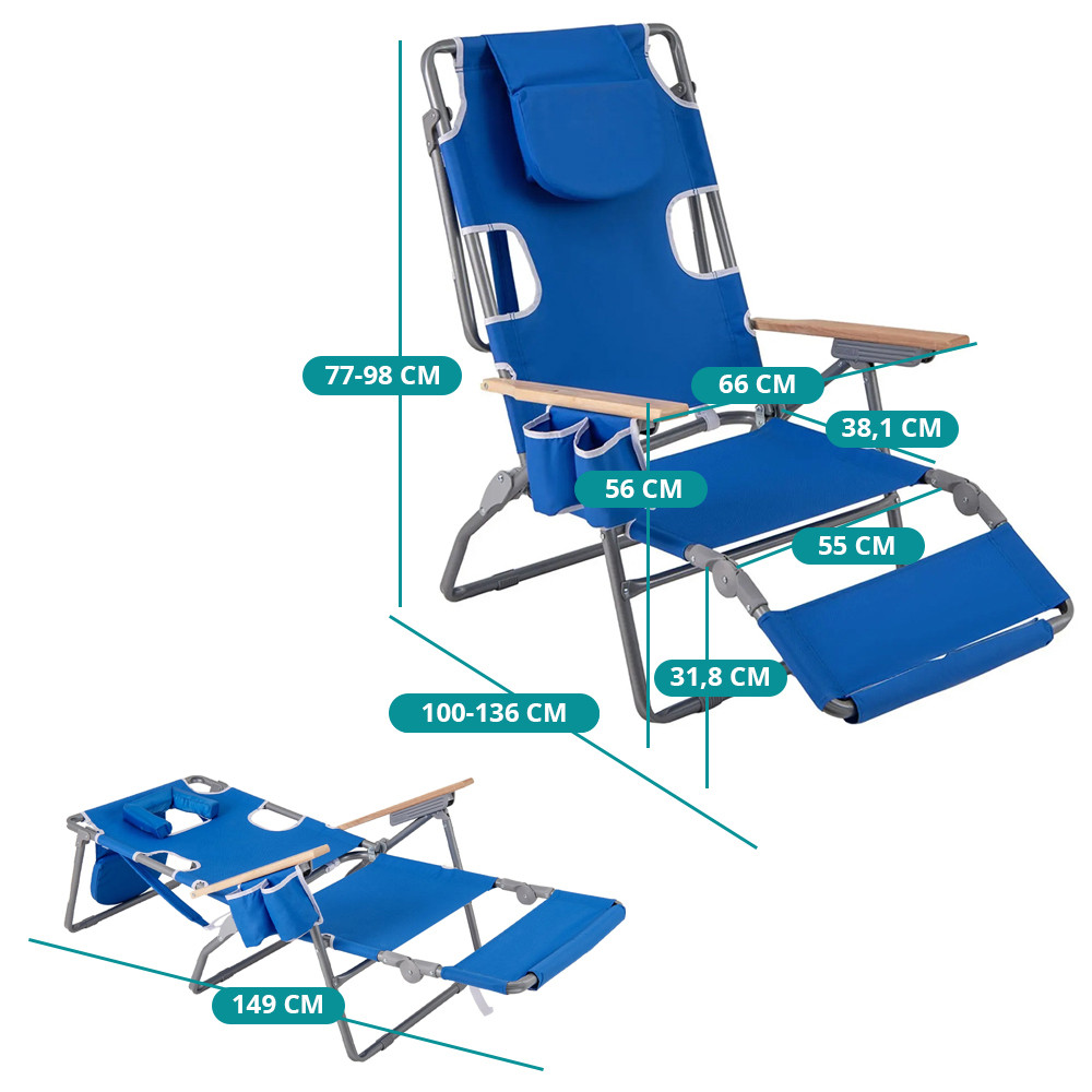Ak hľadáte pohodlné miesto na sedenie a ležanie na pláž, kemping alebo len na terasu, táto stolička je skvelým spoločníkom. Môžete v nej sedieť počas rozhovoru, trochu si zdriemnuť alebo sa úplne natiahnuť na opaľovanie.