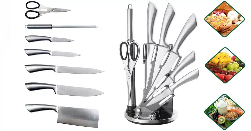 Praktický otočný stojan pomáha udržať nože v poriadku a zároveň poskytuje rýchly prístup ku každému z nich. Zaberá málo miesta – len 15 cm v priemere, takže sa ľahko zmestí aj na menšiu kuchynskú linku.