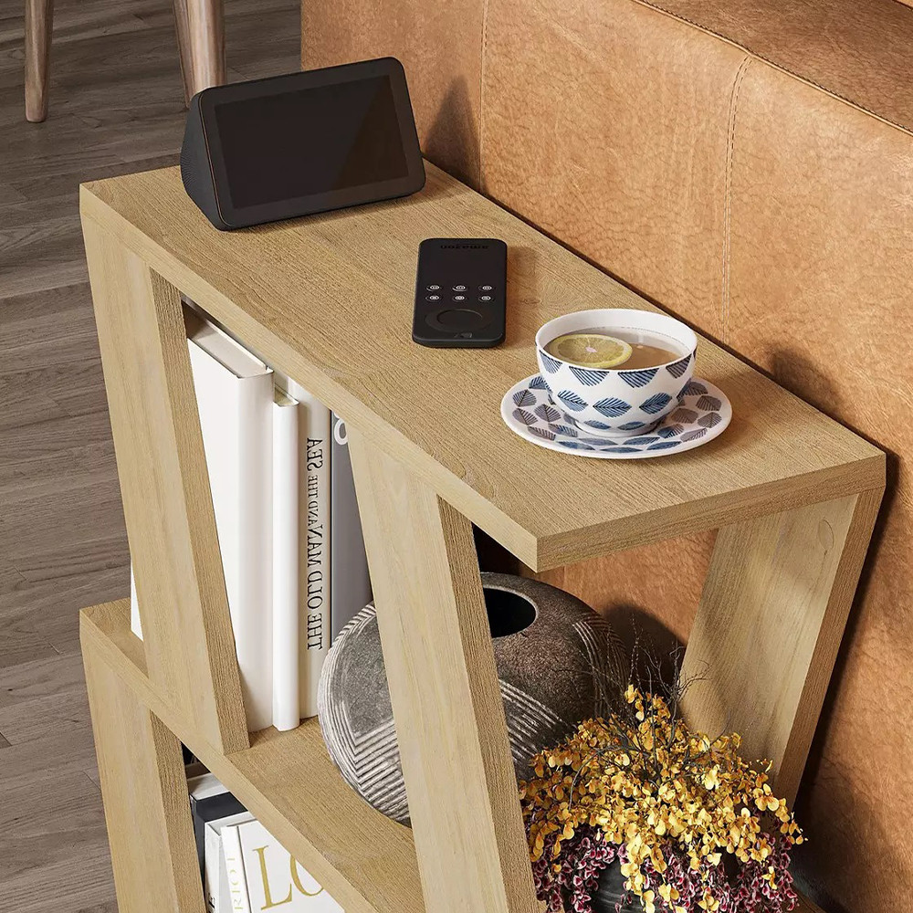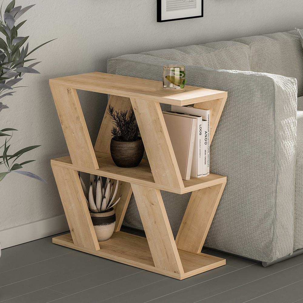 Vrchná plocha môže pojať lampu, nápoje alebo dekorácie, zatiaľ čo dolná polička poskytuje extra priestor pre knihy a doplnky.