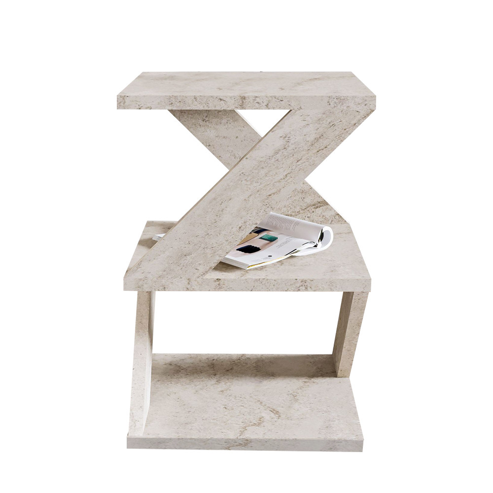 Povrch s mramorovým efektom vytvára elegantnú, minimalistickú atmosféru, ktorá okamžite pritiahne pozornosť. Je to ideálna voľba na umiestnenie vedľa pohovky v obývačke, ako nočný stolík v spálni alebo dokonca ako dekoratívny prvok v štýlovom rohu.