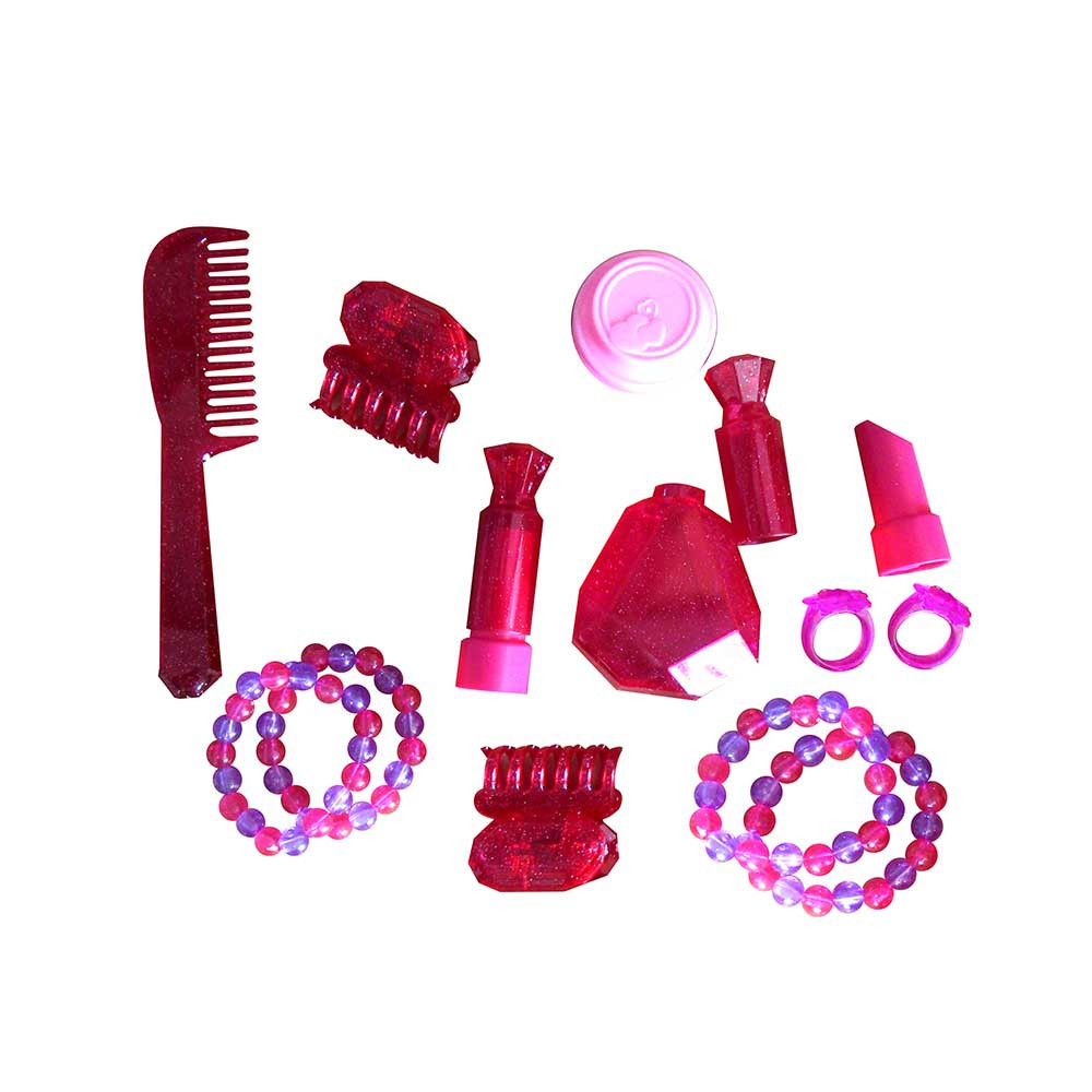 Súprava obsahuje všetko, čo malá princezná potrebuje: šperky, vlasové doplnky a dokonca aj hračkársky fén. Tieto doplnky ponúkajú množstvo možností pre hry, od česania a líčenia až po hudobné vystúpenia. Produkt je kompaktný, stabilný a odolný, ľahko sa skladá a rýchlo pripravený na hru.