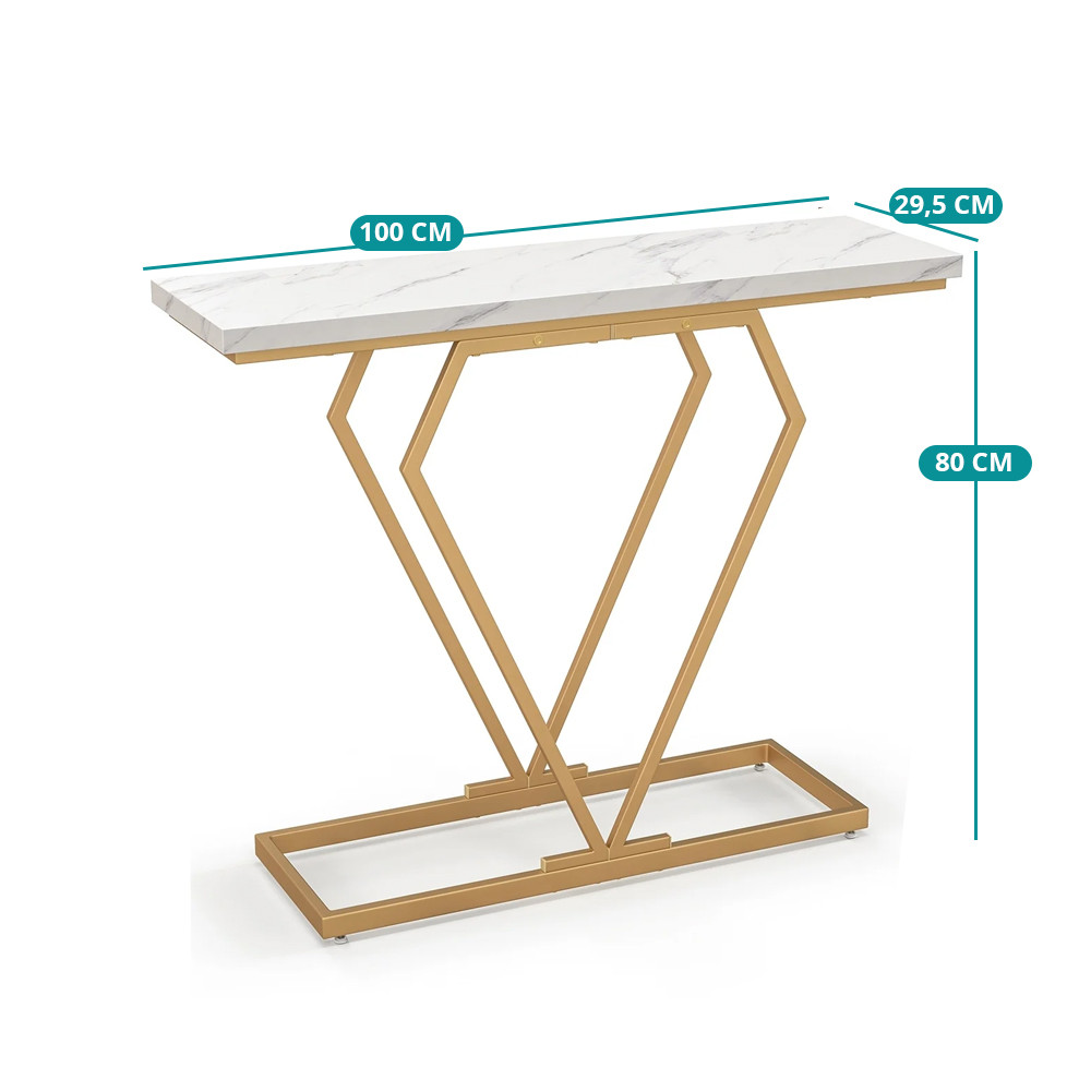 Biela doska s mramorovým vzorom s efektom umelého mramoru a zlatý kovový rám ľahko vytvára uprataný, elegantný celok. Hodí sa do moderných, glam alebo jednoduchých interiérov a pekne zvýrazní dekorácie.