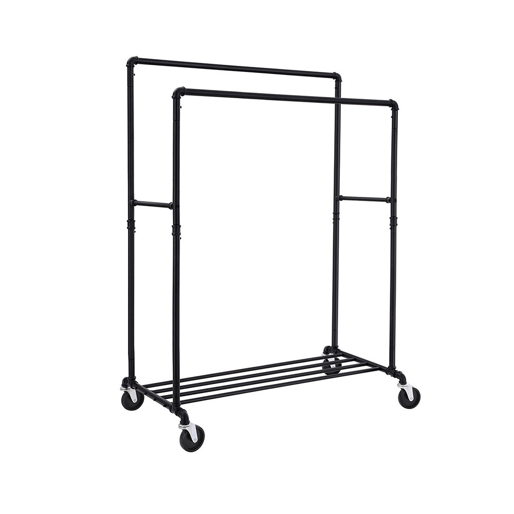 Dvojité tyče a spodná polica poskytujú veľa úložného priestoru pre oblečenie, topánky, tašky či doplnky. Ideálne riešenie na rozšírenie šatníka, do predajne alebo fotoštúdia. Stredná priečka je praktická na šály, kravaty či vešiaky.
