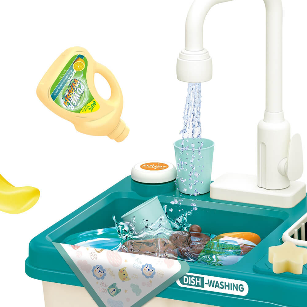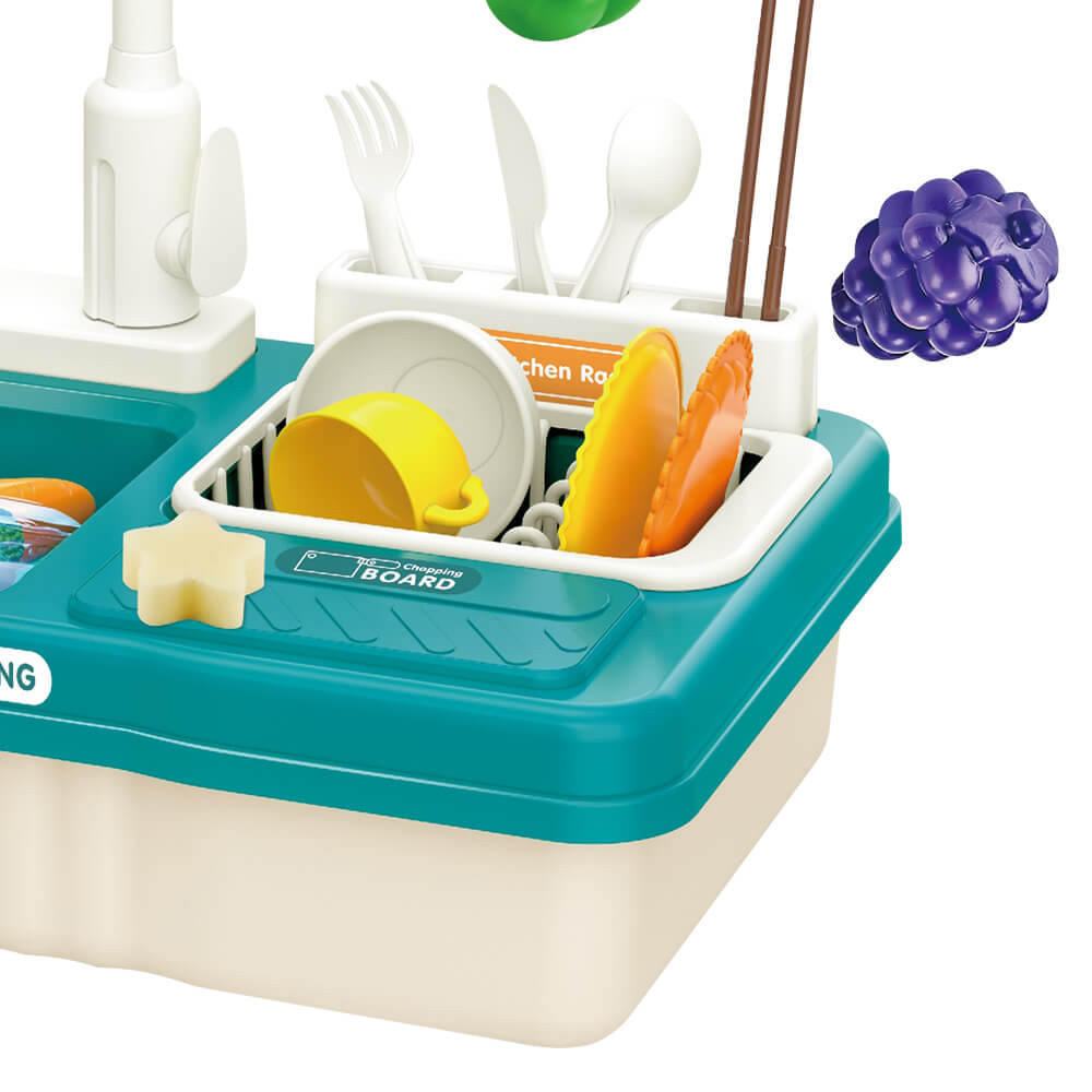 Ak tvoje dieťa prejavuje záujem o rôzne domáce práce, tento dobre vybavený umývací set je skvelou voľbou. Set obsahuje dvojdielny drez, v ktorom možno na jednej strane umývať riad a na druhej strane ho sušiť v odkvapkávači. Odkvapkávač je odnímateľný.