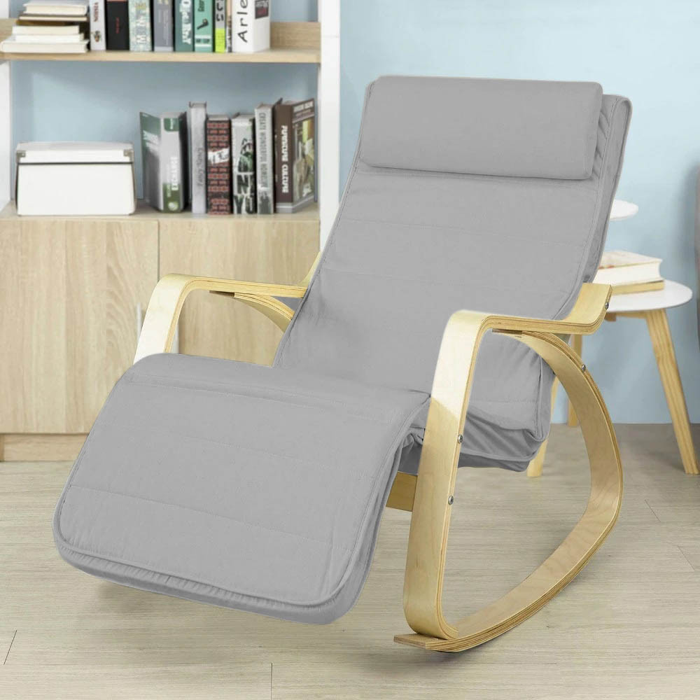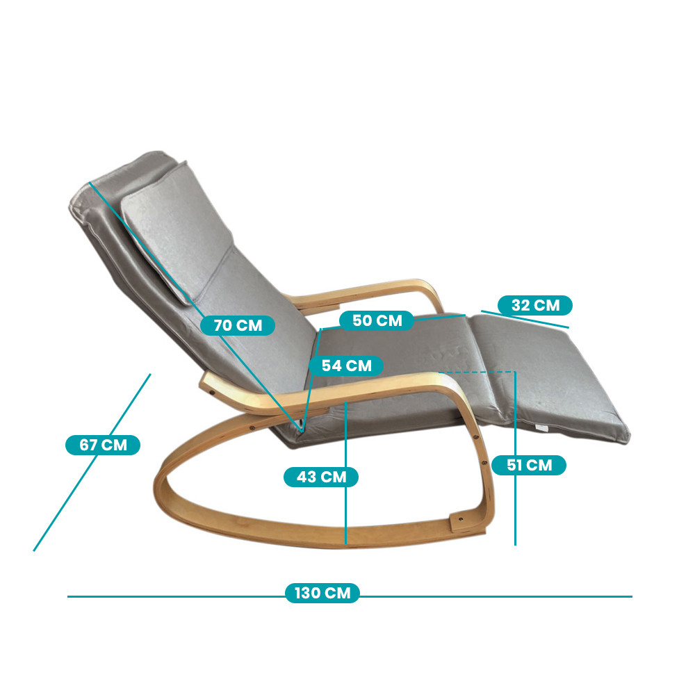 Hojdacie kreslo s nastaviteľnou opierkou nôh je ideálne na čítanie, zdriemnutie alebo chvíľku pokoja. Vďaka 6,5 cm hrubej pene a mäkkému vankúšu pod hlavu ponúka maximálne pohodlie.