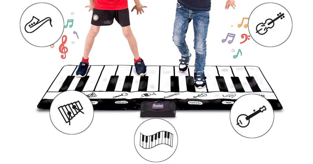 Podložka dokáže prehrávať zvuky 8 rôznych hudobných nástrojov, takže každé dieťa si nájde svoj obľúbený. Vďaka nahrávacej funkcii môžu deti zaznamenávať svoje vlastné hudobné výtvory a kedykoľvek si ich znovu vypočuť. Nastaviteľná hlasitosť umožňuje prispôsobiť hru bez rušenia okolia. Predprogramované demo melódie poslúžia ako inšpirácia alebo hudobný podklad.