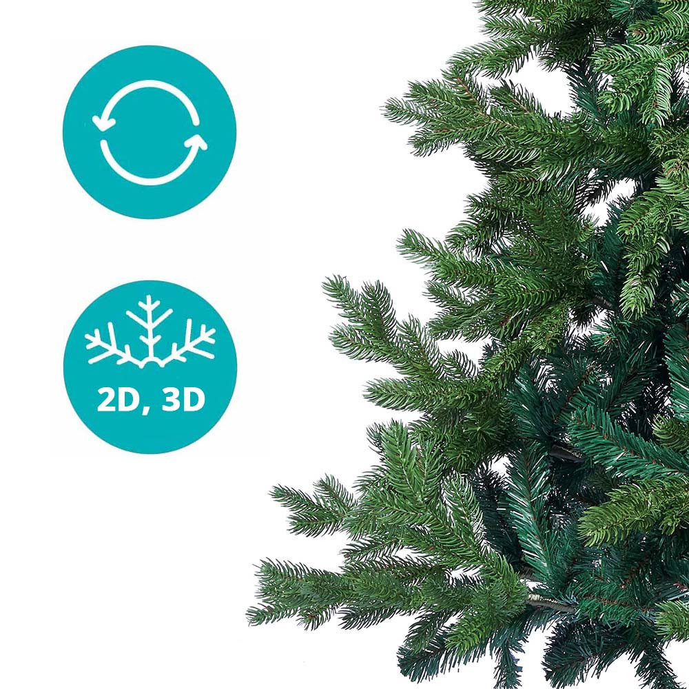Dodajte svojmu domovu sviatočnú atmosféru s hustým a realistickým 3D vianočným stromčekom! Vďaka kombinácii 2D a 3D ihličí pôsobí stromček prirodzene a pripomína čerstvo vyrúbaný živý strom. Ak nechcete každý rok kupovať nový stromček, no záleží vám na vianočnej atmosfére, toto ekologické riešenie je pre vás ideálne.