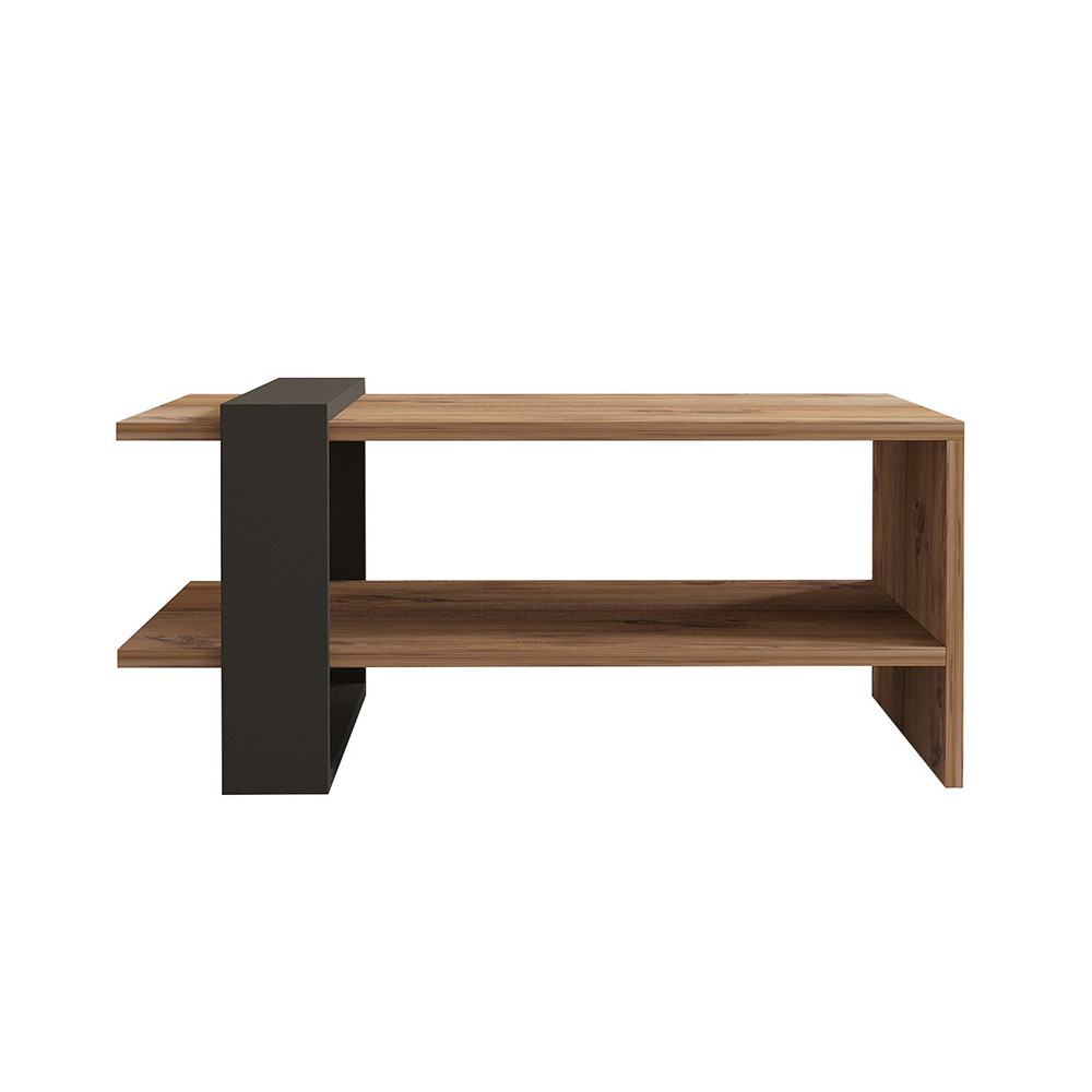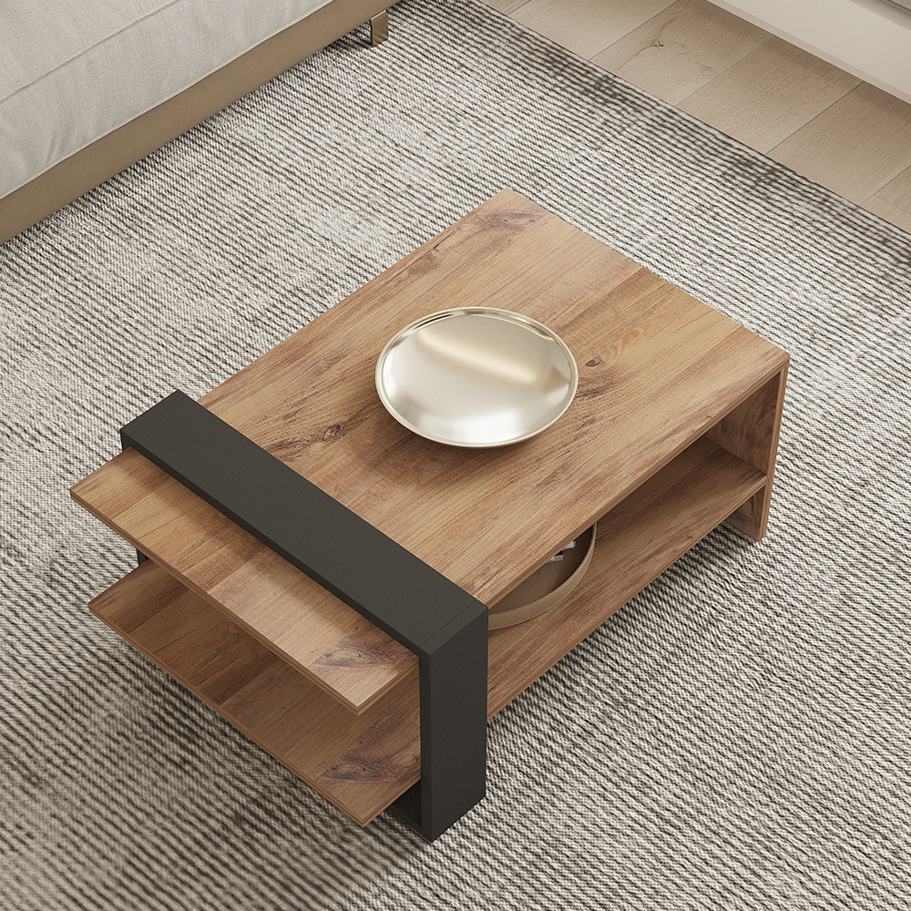 Drevený povrch vyžaruje teplo, doplnený moderným, priemyselným vzhľadom antracitového prvku. Je nápadný, no ľahko sa kombinuje s iným nábytkom.
