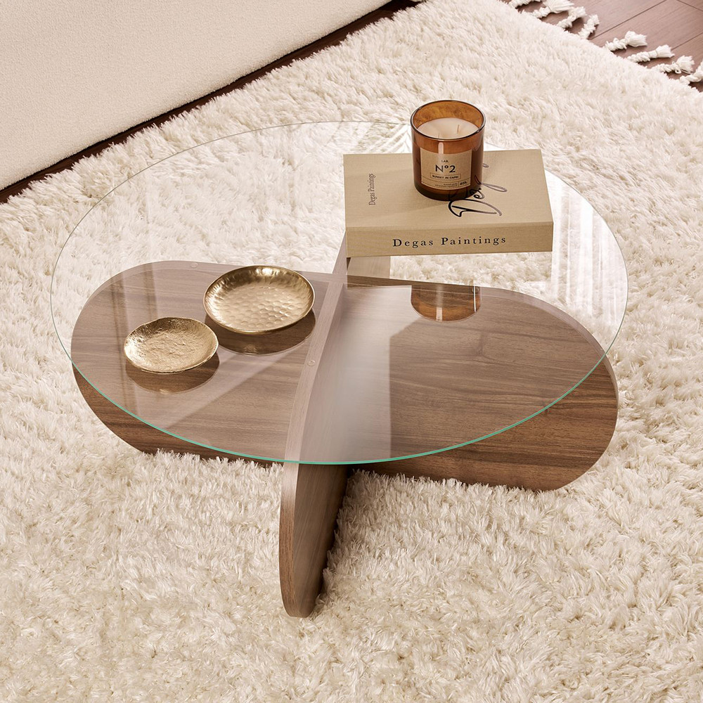 Priehľadný sklenený vrch pridáva ľahkosť do obývacej izby a poskytuje dostatok miesta na nápoje, knihy alebo dekorácie. Je to ideálny stredobod pre relaxáciu.
