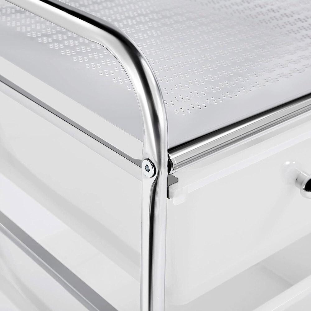 Chrómovaný rám a čisté línie dodávajú vozíku elegantný vzhľad, vďaka čomu sa ľahko začlení do akéhokoľvek interiéru. Či už ho umiestnite do domácej kancelárie, kozmetického stolíka alebo salónu, ponúkne vám praktické a estetické riešenie.