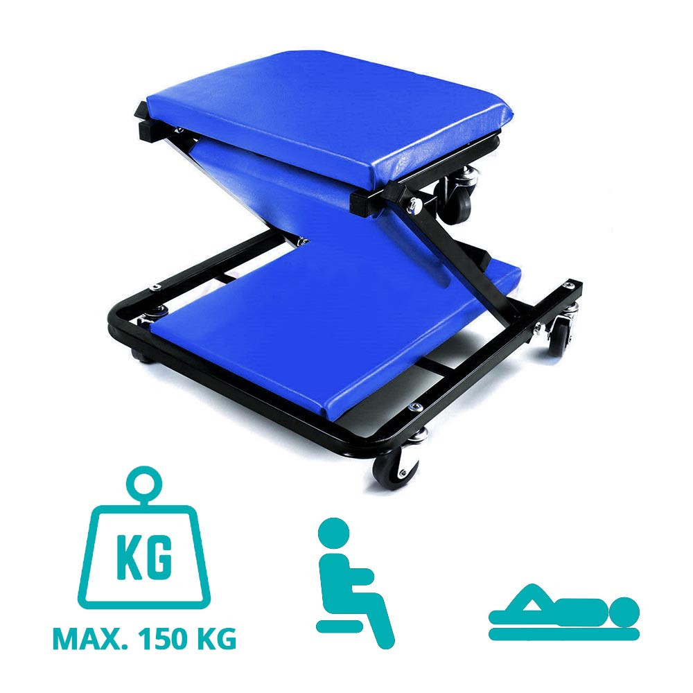 Táto pojazdná stolička sa dá zložiť do jedinečného "Z" tvaru, čím plní dve funkcie: môže byť použitá ako pohodlná montážna stolička alebo praktická podložka. Jednoduchá a intuitívna transformácia šetrí čas pri práci.