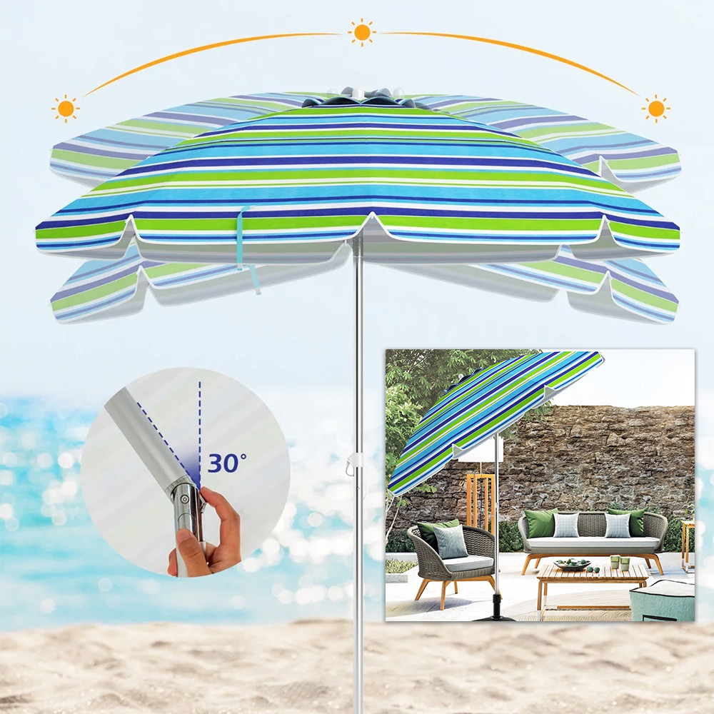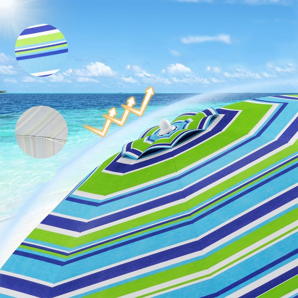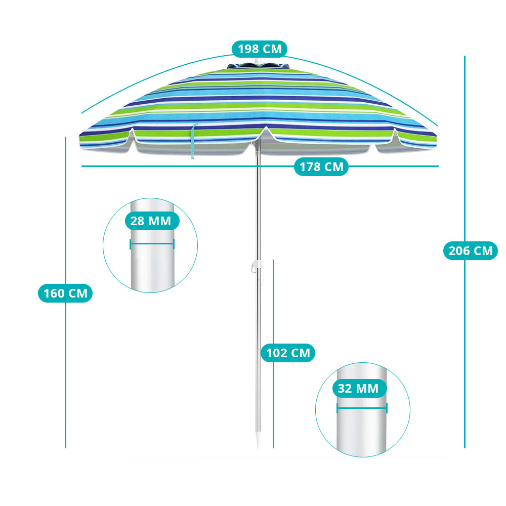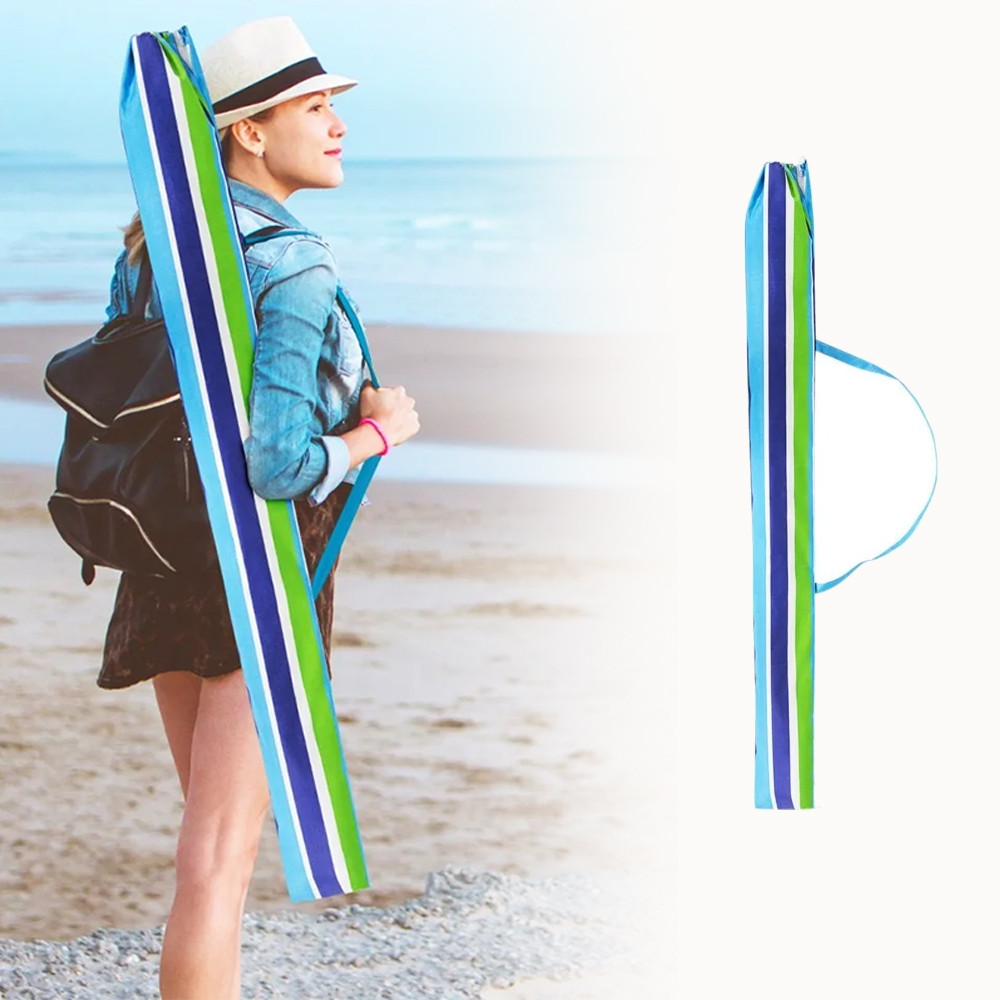 So zabudovaným skrutkovým kotvením a hliníkovým upevňovacím prvkom môže byť slnečník rýchlo a bezpečne ukotvený, zatiaľ čo dvojdielny dizajn a taška na prenášanie uľahčujú prepravu a skladovanie.