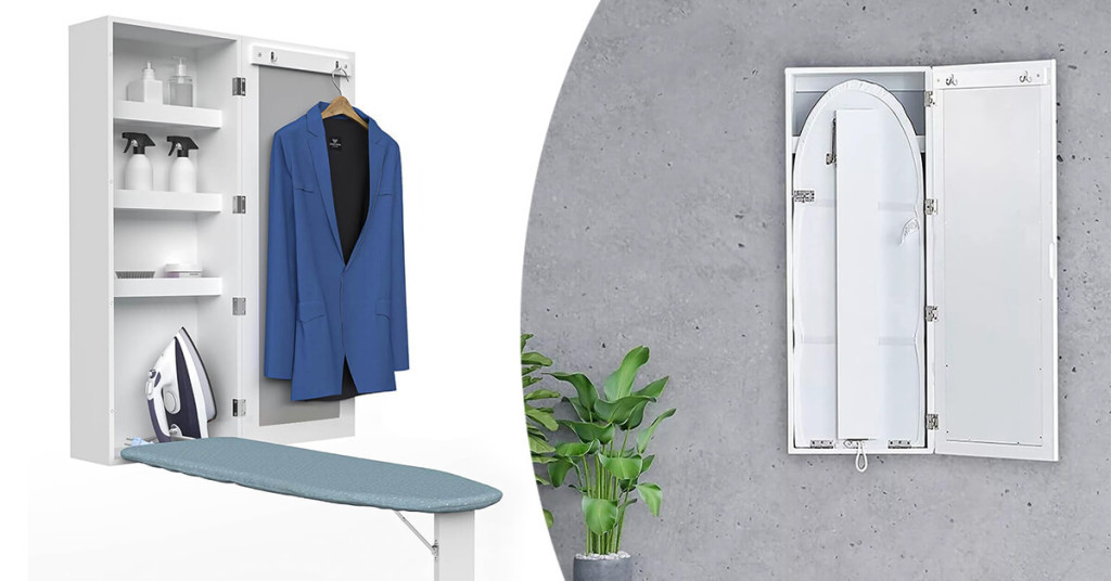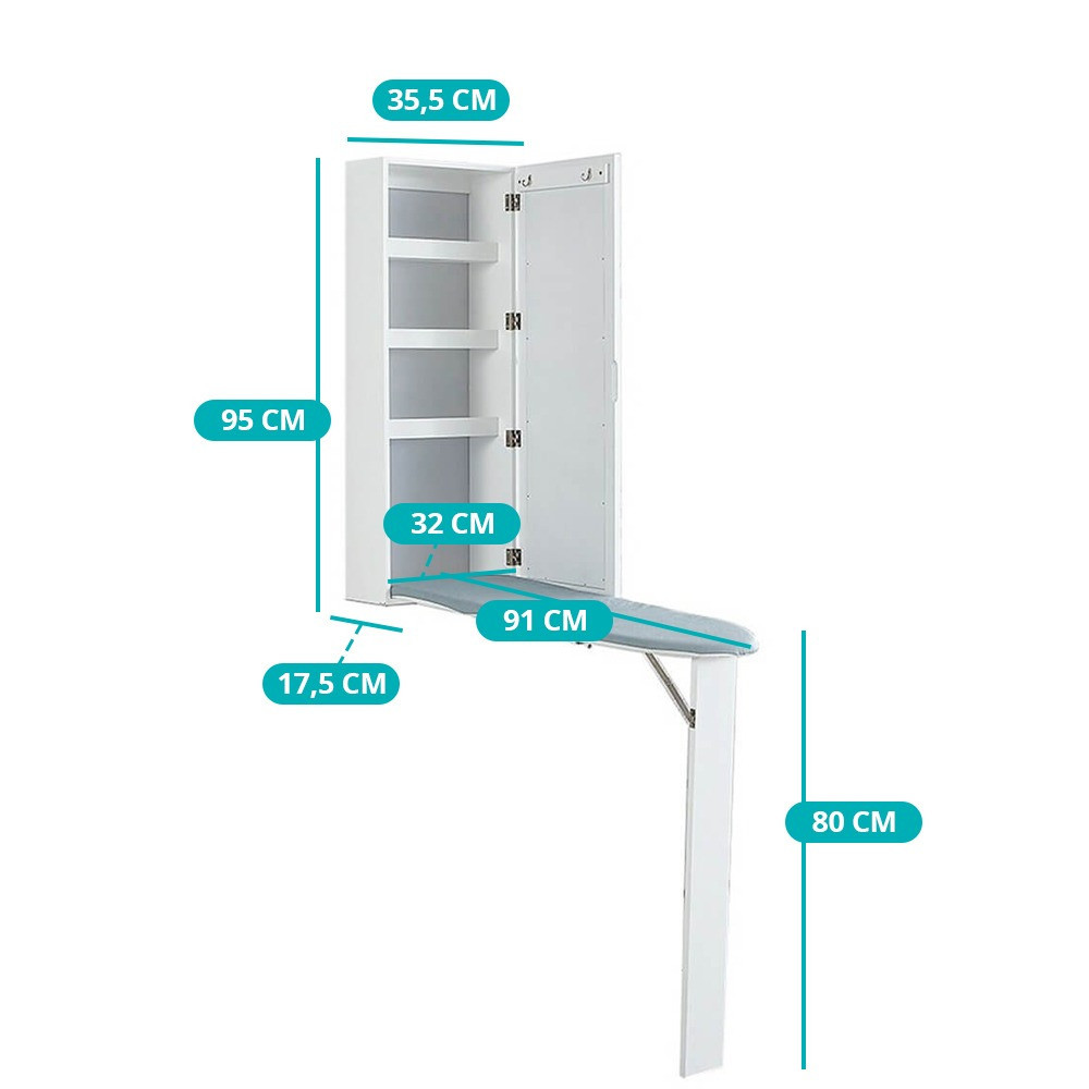 Vstavaná 91 cm dlhá žehliaca doska sa dá jedným pohybom vyklopiť a je okamžite pripravená na použitie. Po použití ju možno jednoducho sklopiť späť, takže nezaberá zbytočný priestor. Vnútorné priehradky sú ideálne na uloženie žehliacich pomôcok, oblečenia alebo doplnkov.