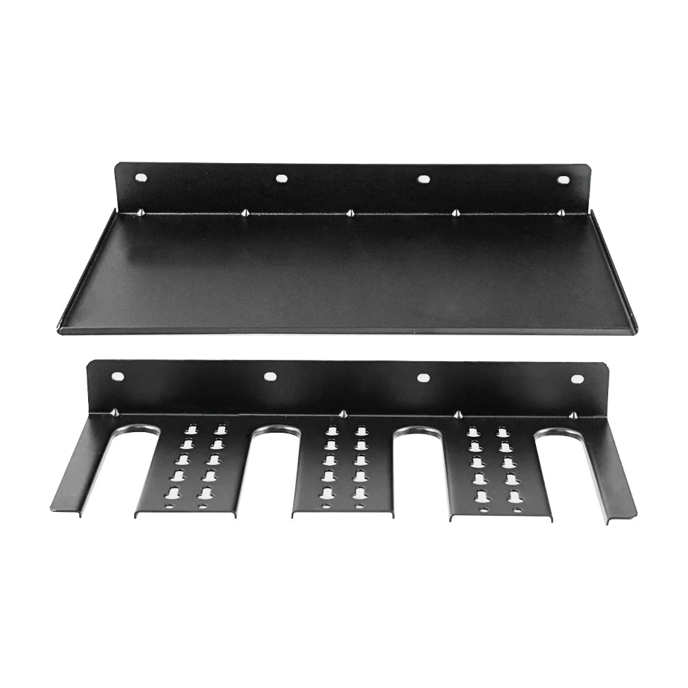 Držiak pozostáva z dvoch samostatných častí, takže policu a držiak na vŕtačku môžete pripevniť v ľubovoľnej vzdialenosti a poradí podľa svojich potrieb a steny. Montážne otvory uľahčujú upevnenie a súprava hmoždiniek v balení umožňuje bezpečné pripevnenie na rôzne druhy stien.