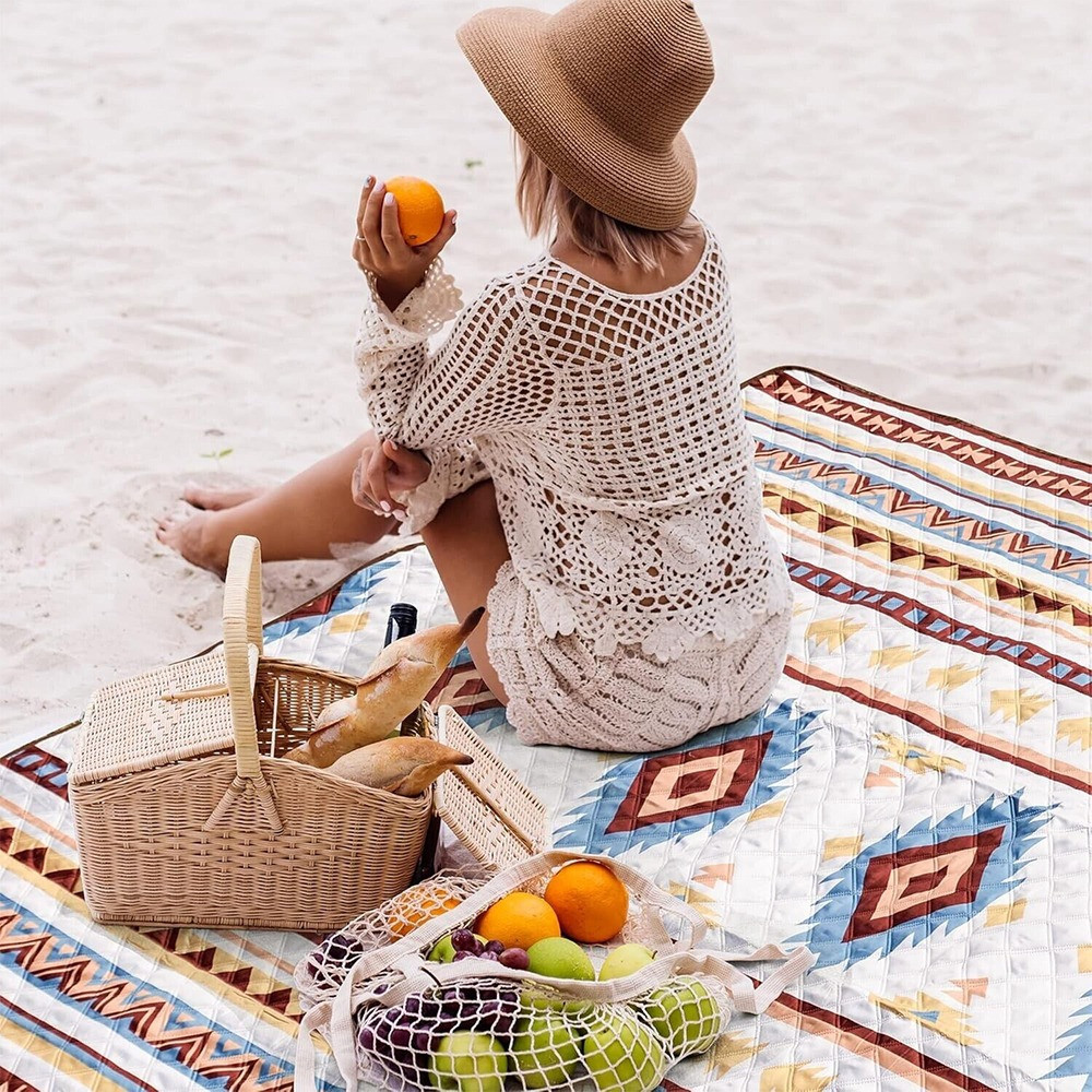 Pikniková deka ponúka dostatok miesta pre menšiu aj väčšiu skupinu ľudí. Jej mäkký a pohodlný povrch prispieva k príjemnému oddychu, zatiaľ čo štýlový dizajn dodáva estetický vzhľad každému vonkajšiemu programu.