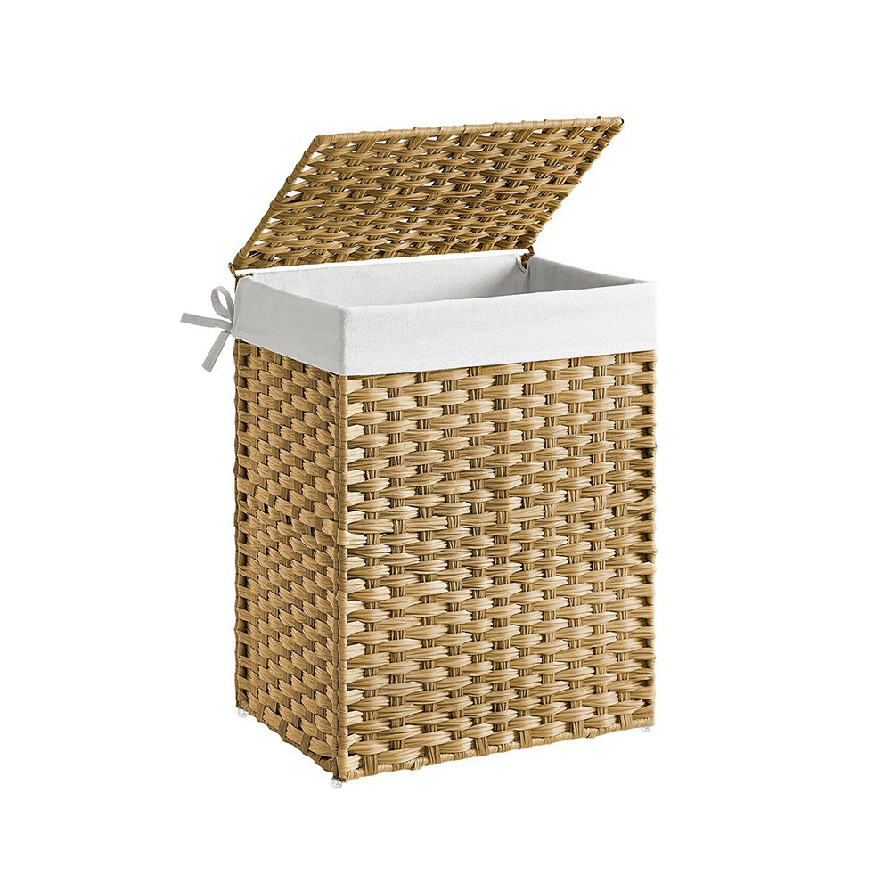 Vyberateľné a prateľné bavlnené vrecko umožňuje jednoduché prenášanie bielizne k práčke. Bočné úchyty a praktické veko uľahčujú každodenné používanie a zároveň skryjú špinavé oblečenie pred zrakom.