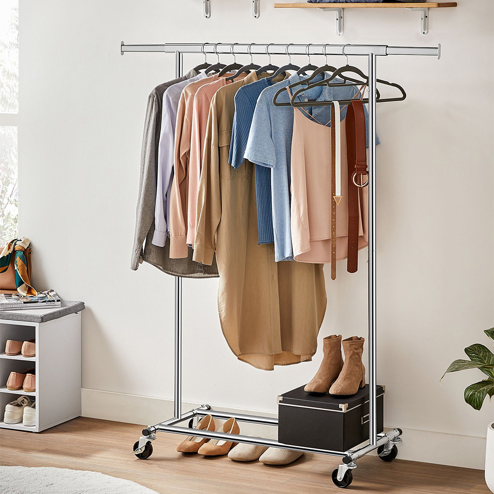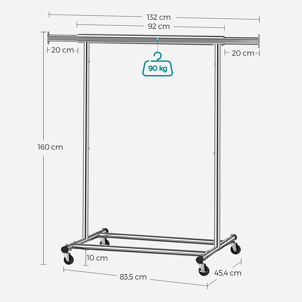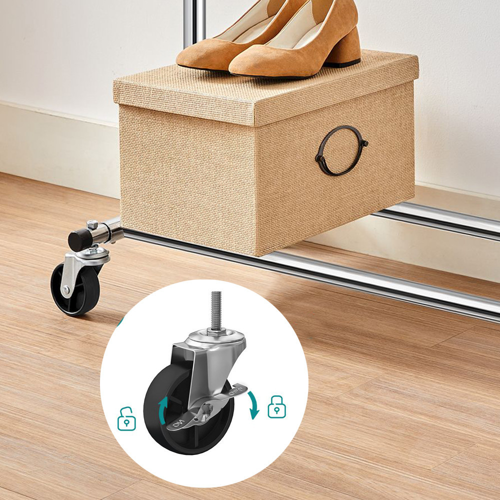 Tento odolný, pojazdný stojan na oblečenie je ideálnou voľbou, ak chcete mať kabáty, oblečenie či tašky vždy úhľadne usporiadané. Či ho použijete v spálni, šatníku alebo práčovni, všetko budete mať vždy poruke.