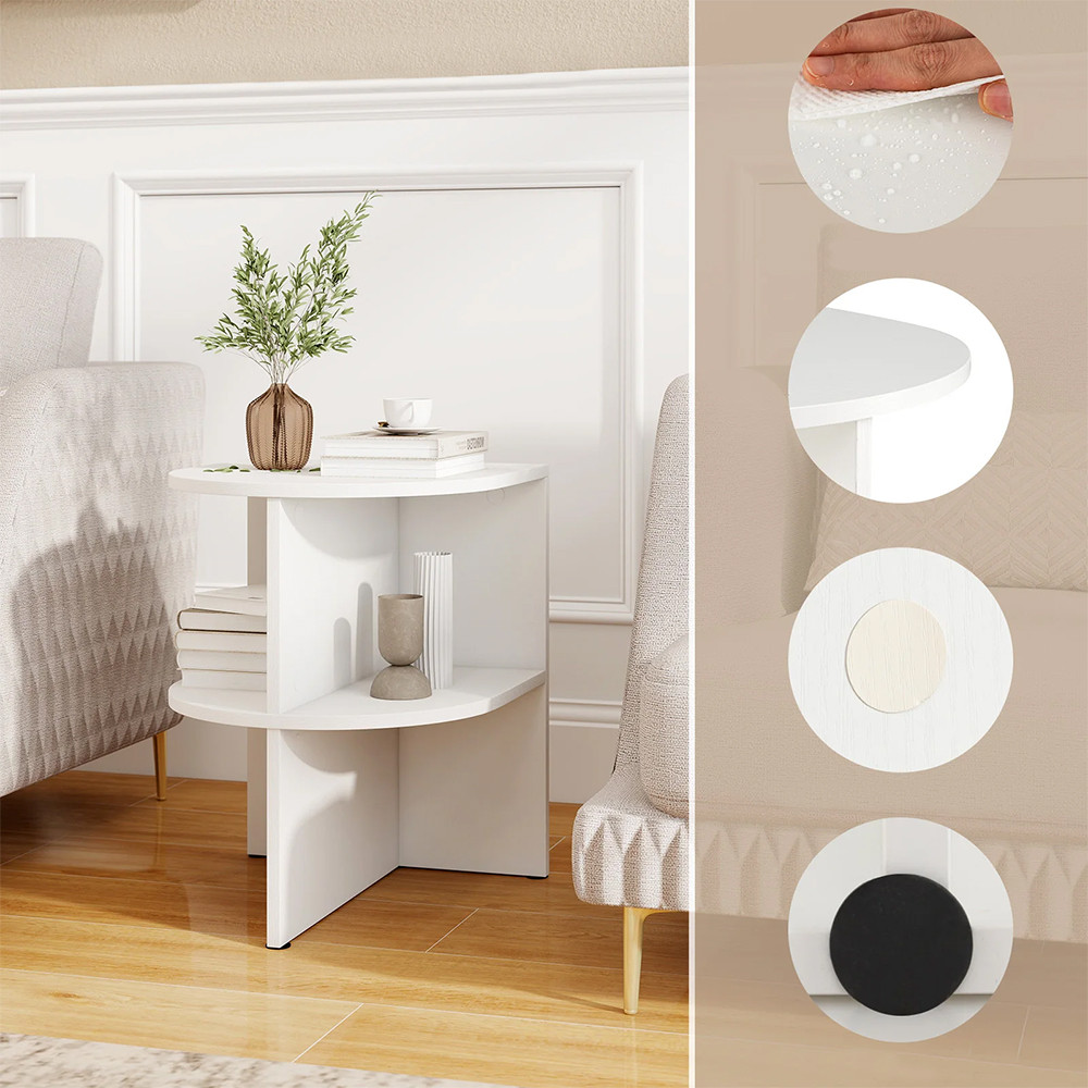- Polkruhový bočný stolík s otvorenými policami