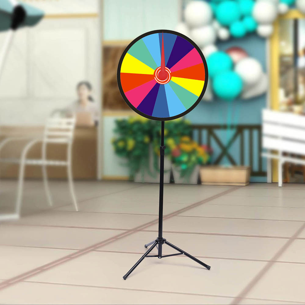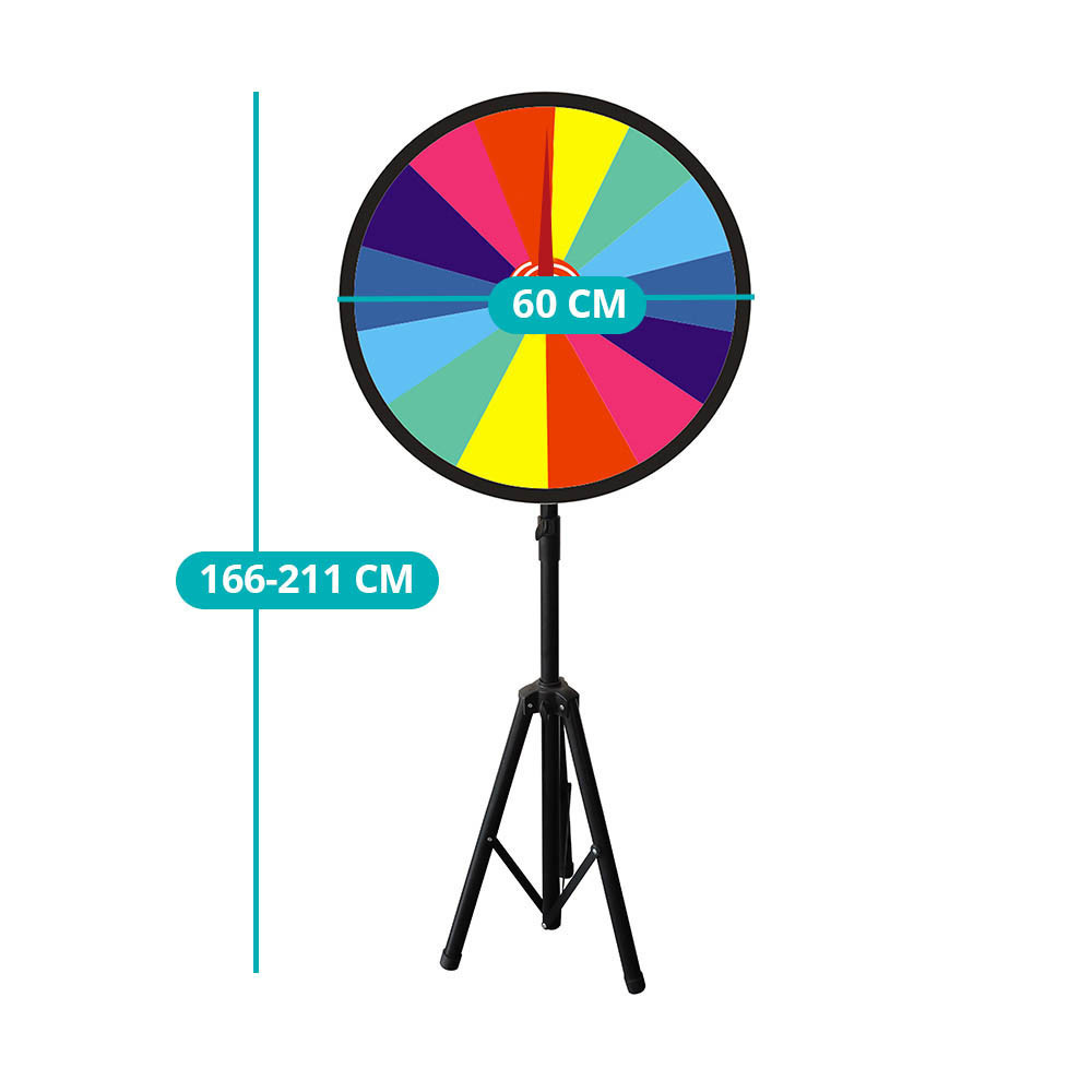 Pevná kovová a plastová konštrukcia zaisťuje dlhú životnosť, zatiaľ čo stabilná základňa umožňuje bezpečné používanie. Farebné sektory dodávajú hre vizuálnu dynamiku a zaručujú skvelú atmosféru pri každom otočení.