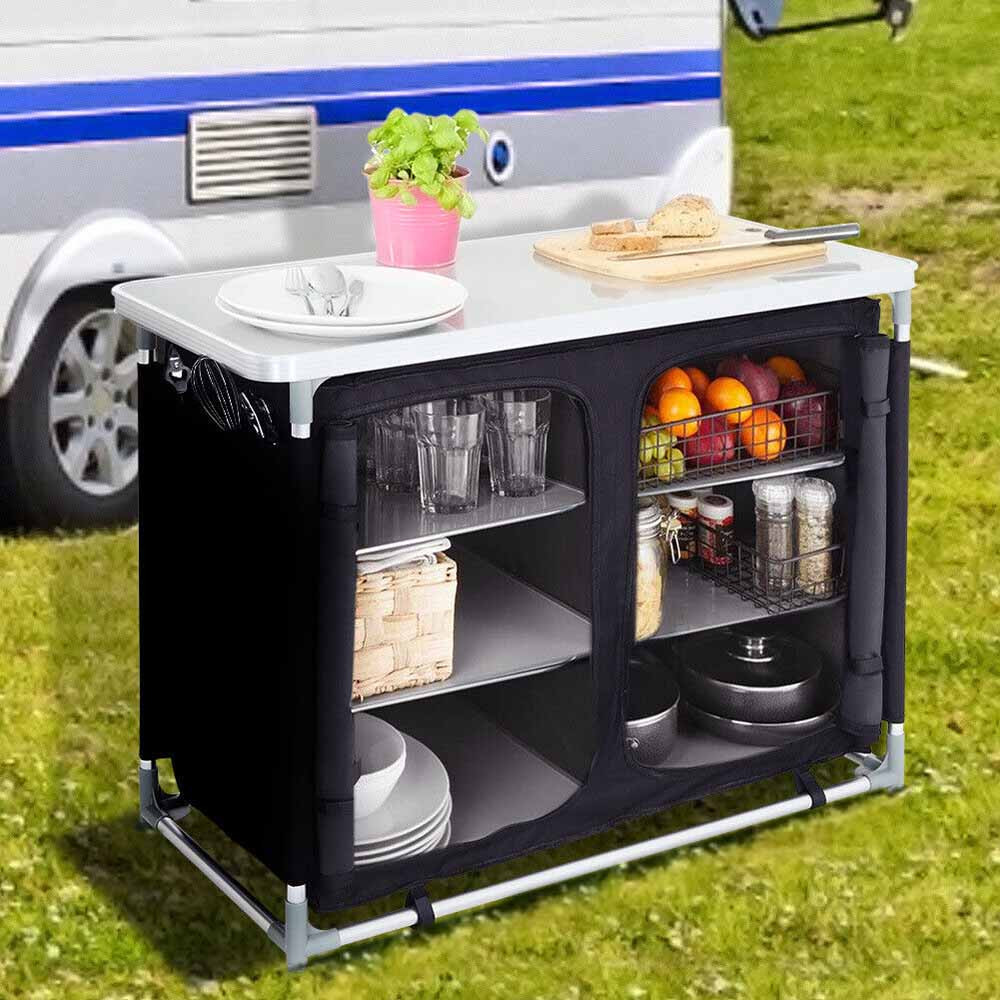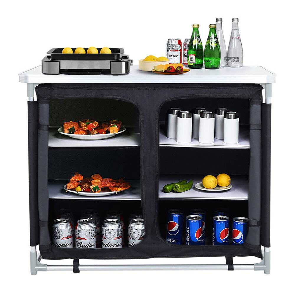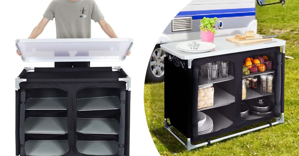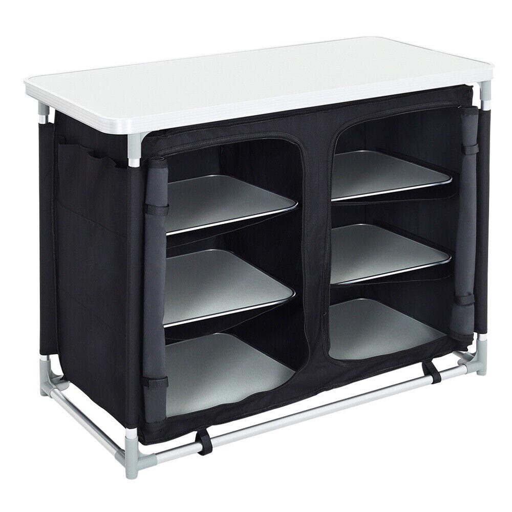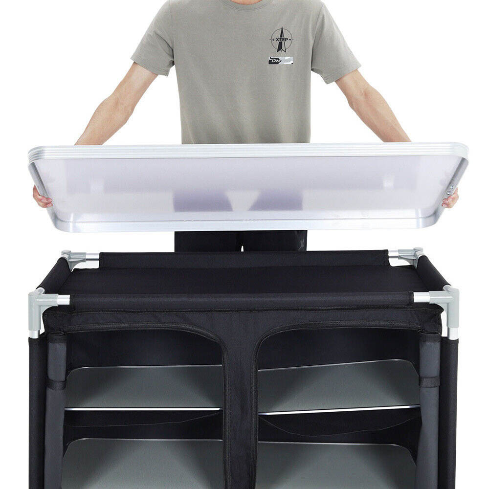 Náš prenosný policový organizér je ideálny pre každého, kto chce mať poriadok aj počas pobytu v prírode. Veľká pracovná plocha a viacero úložných miest zabezpečujú, že pri vonkajšom varení bude všetko poruke.