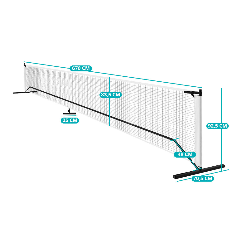 Sieť je vyrobená podľa oficiálnych rozmerov, čo ju robí ideálnou na tréning, prípravu na súťaže a rekreačnú hru. Jej stabilná konštrukcia umožňuje začiatočníkom aj skúseným hráčom užívať si hru na akomkoľvek teréne.