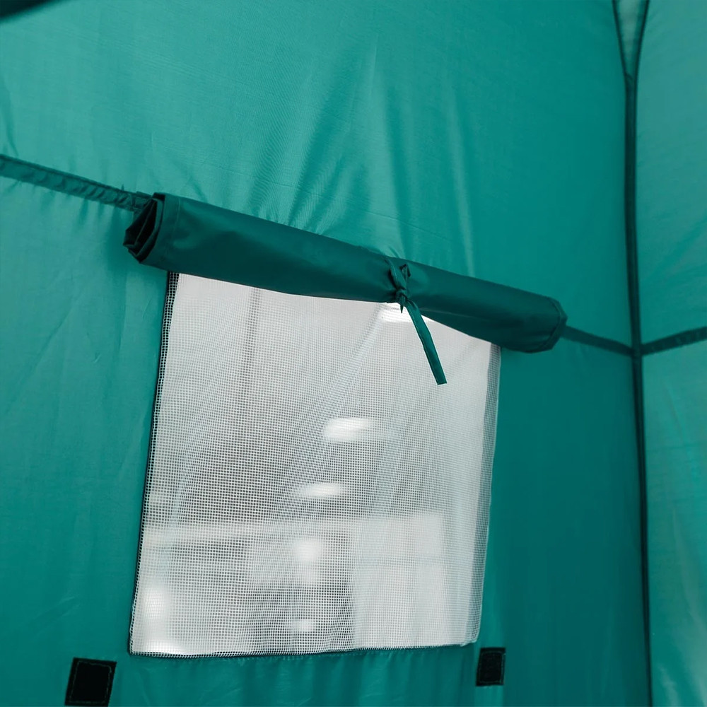 Jednoduchá zelená farba ladí s vonkajším prostredím, otvorený vrch a bočné okno pomáhajú vetrať. Pri používaní sa tak nespolížete a zipsové dvere zároveň poskytujú potrebné súkromie.