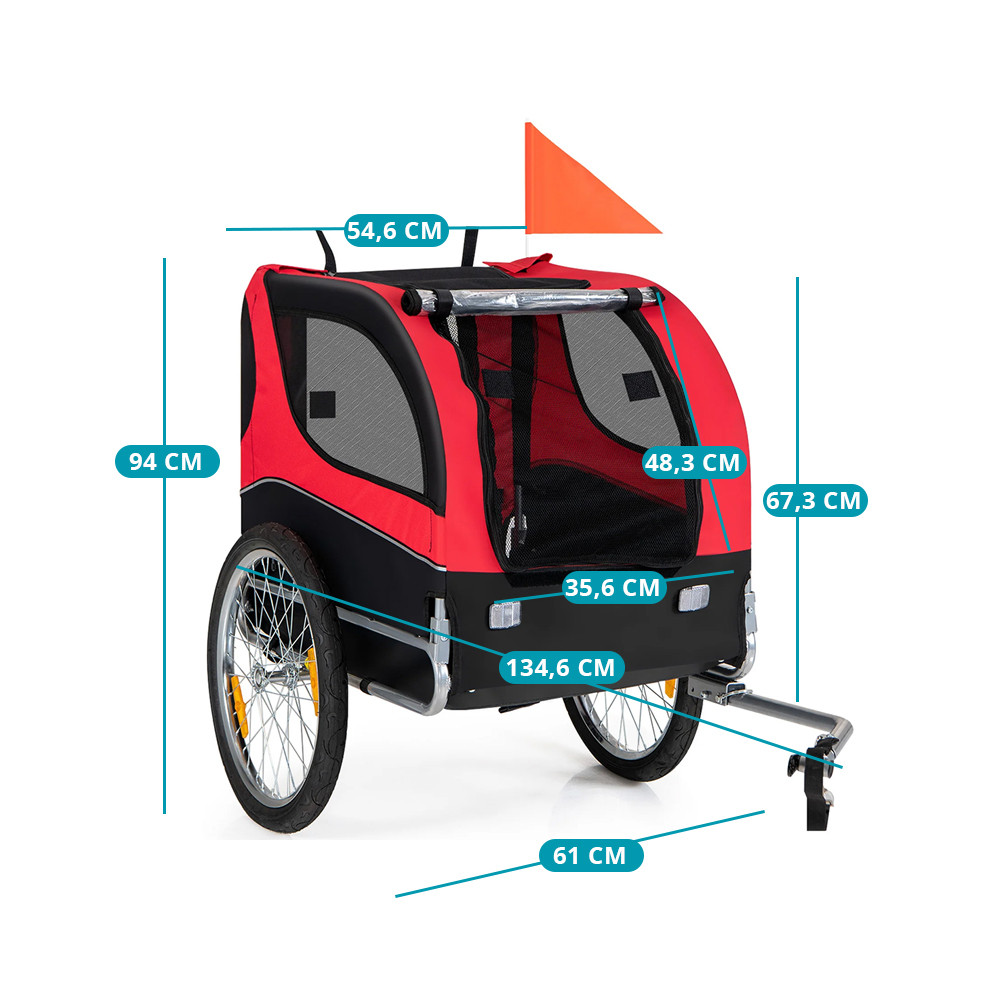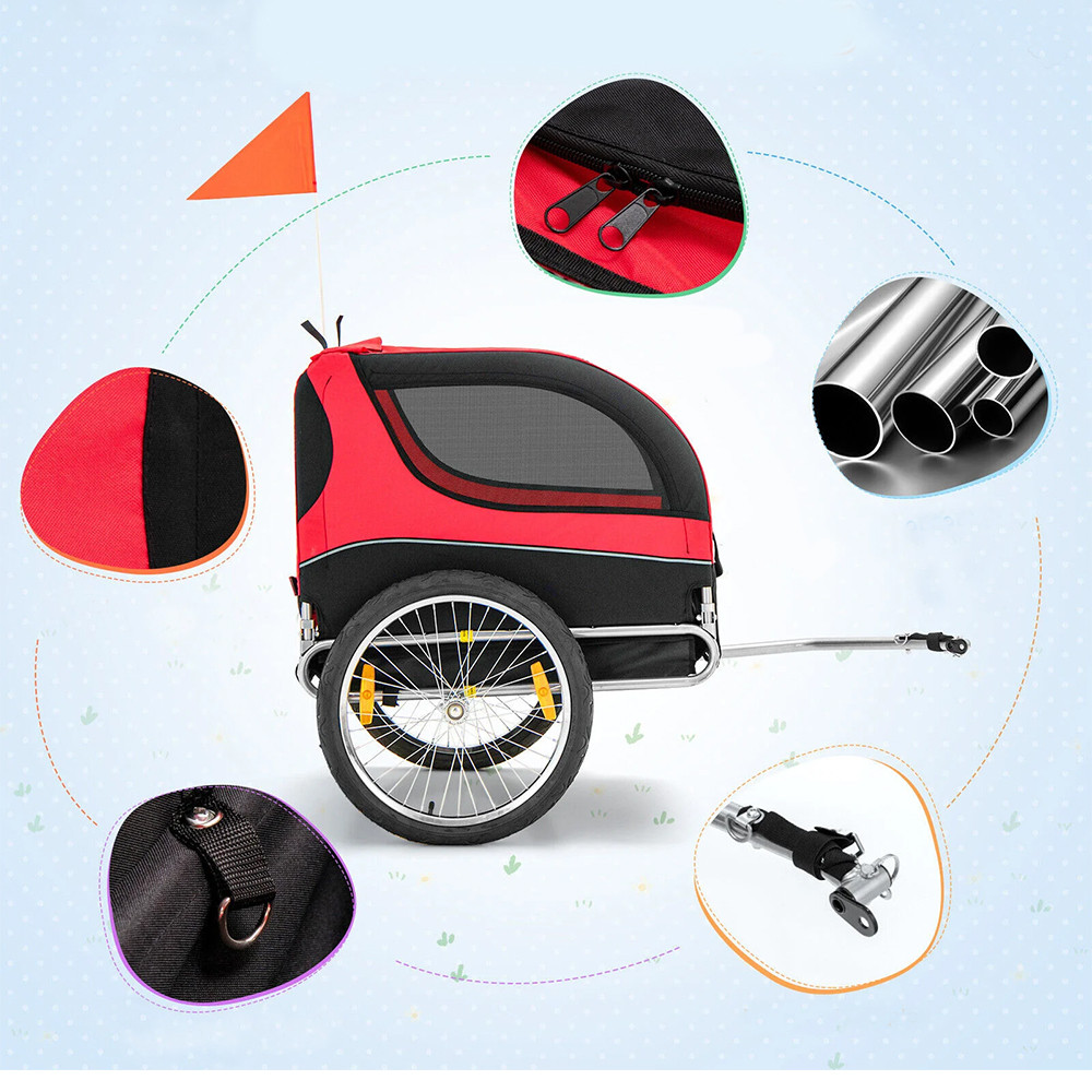 Silný oceľový rám a odolný oxfordský materiál zabezpečujú stabilné používanie, zatiaľ čo príves je ľahko skladateľný a uskladniteľný. Veľké kolesá umožňujú hladké jazdenie na rôznych povrchoch.
