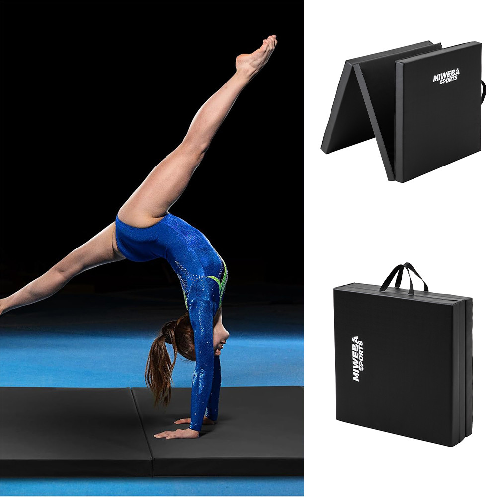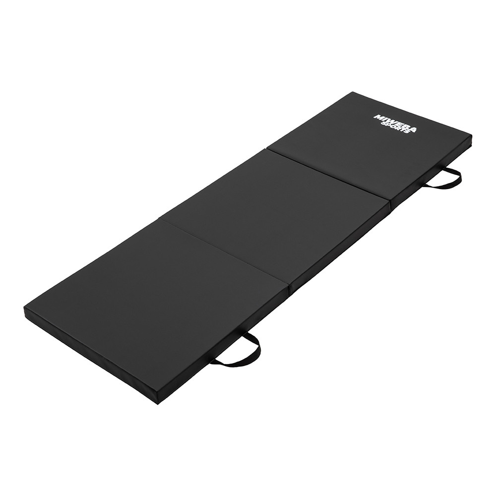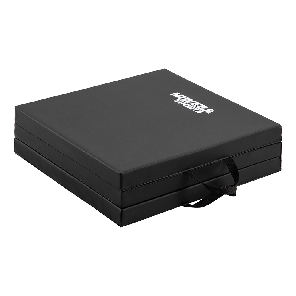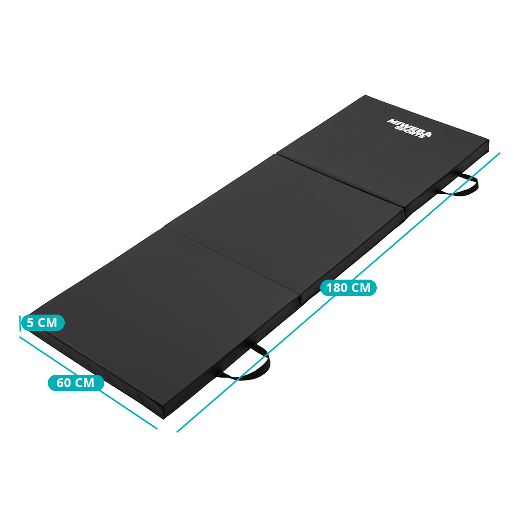 Podložka je skladacia, čo umožňuje jej úhľadné uloženie pod posteľ alebo do skrine po tréningu. Dve integrované rukoväte uľahčujú prenášanie a okamžité použitie.