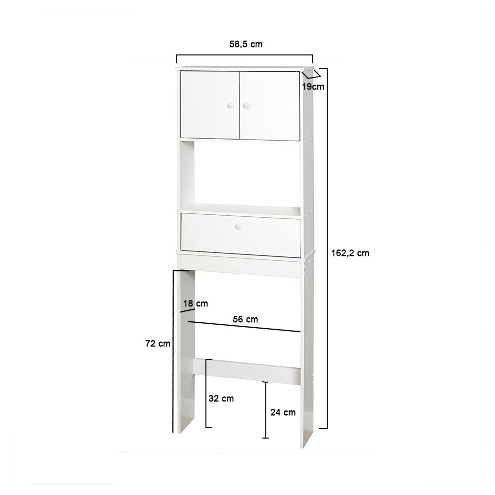 Táto skrinka nad toaletu je navrhnutá špeciálne pre malé priestory. Kompaktné rozmery (162,2x58,5x19 cm) umožňujú jej jednoduché umiestnenie aj do najužších kúpeľní alebo hosťovských toaliet, pričom poskytuje ďalší úložný priestor. Police sú usporiadané tak, aby umožňovali prehľadné uloženie toaletného papiera, čistiacich prostriedkov a iných kúpeľňových doplnkov.
