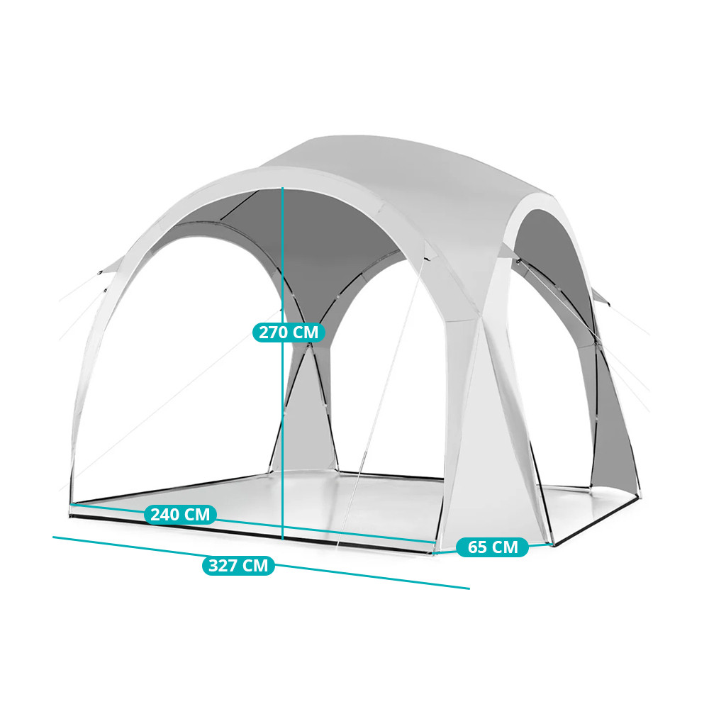 Reinforced fiberglass poles, guy rope system, and ground stakes ensure stability. Stan sa dá zostaviť za pár minút a je ľahko prenosný v prenosnej taške.