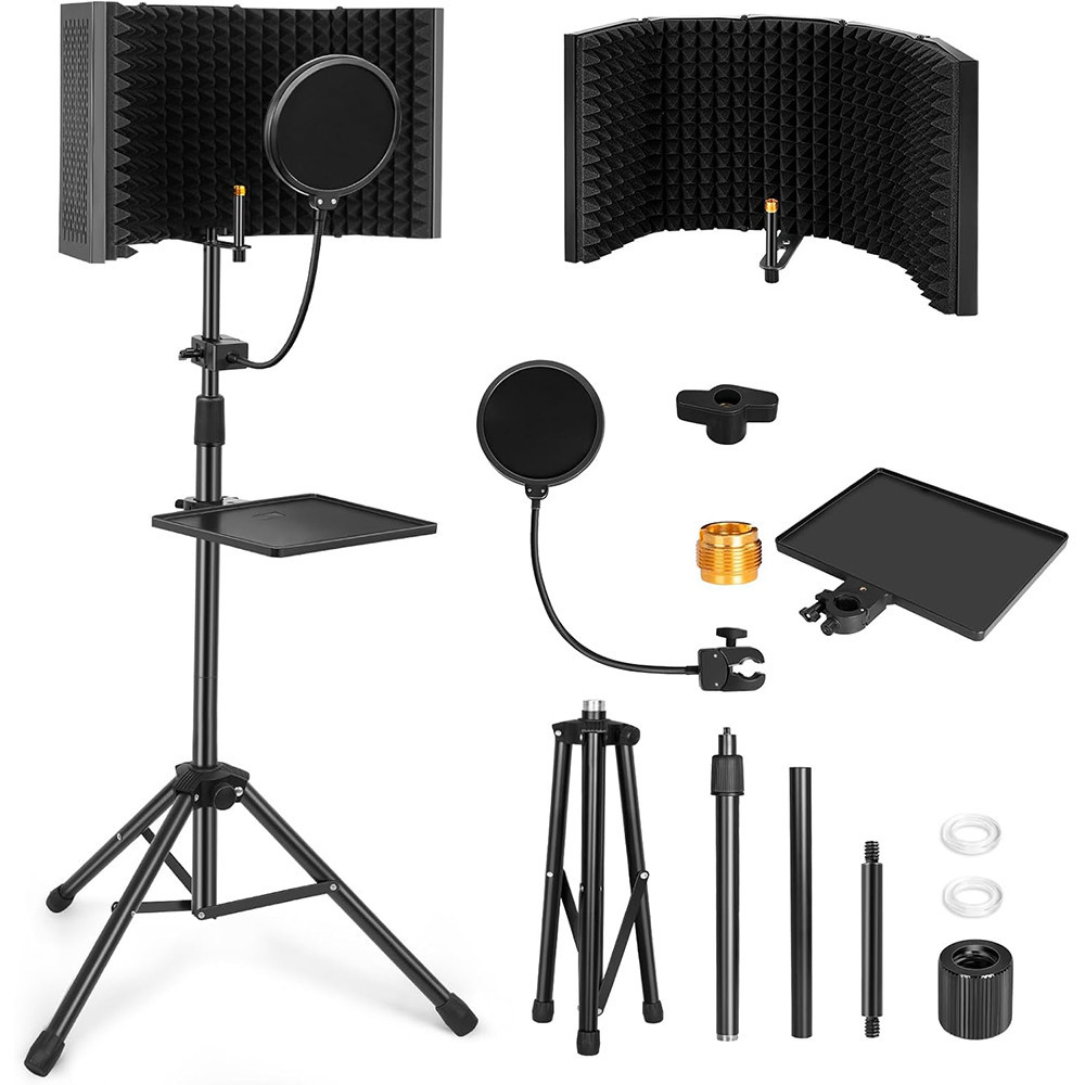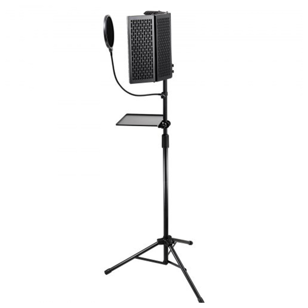 Balenie obsahuje všetky potrebné súčasti na rýchlu a jednoduchú montáž. Rôzne závity a adaptéry zabezpečujú kompatibilitu s väčšinou typov mikrofónov. Skladací stojan je kompaktný a ľahko prenosný, takže je vhodný aj do mobilných štúdií.