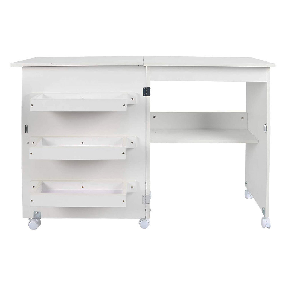 Všetko potrebné na šitie bude vždy po ruke vďaka praktickému policovému systému. Po rozložení ponúka stôl 1 centrálnu a 3 bočné police, ktoré umožňujú prehľadné uloženie nití, látok a ďalších pomôcok.