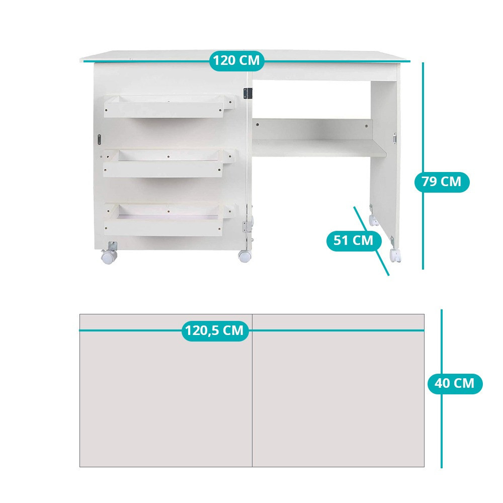 - Rozmery pracovnej dosky rozloženej: 40 × 120,5 cm