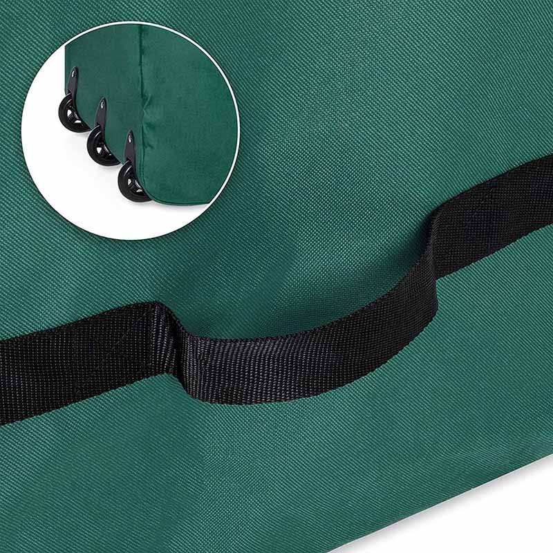 Taška je vyrobená z pevného, oderuvzdorného materiálu, ktorý účinne chráni uložené predmety pred prachom, vlhkosťou a inými vonkajšími vplyvmi. Vaše dekorácie a sezónne vybavenie tak zostanú v perfektnom stave.