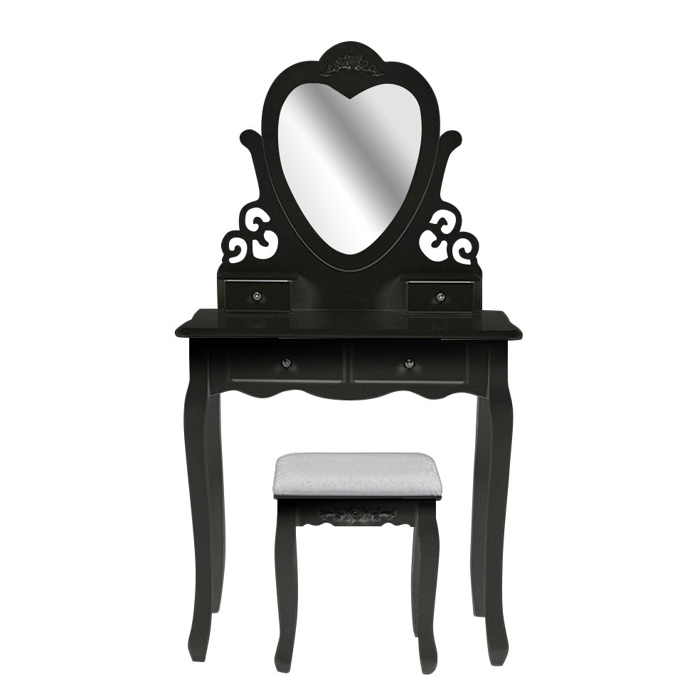 Tento drevený toaletný stolík so zrkadlom je skutočným klasickým kúskom, ktorý sa skvele hodí do spálne, šatníka alebo elegantného salónu. Čalúnená stolička je pohodlná a dekoratívna, vďaka čomu si každú chvíľu pri stole naozaj užijete. Úložné priestory zabudované do stolíka umožňujú jednoduché usporiadanie všetkých doplnkov, kozmetiky či šperkov. Odnímateľná vrchná časť umožňuje stolík využiť aj ako písací stôl.