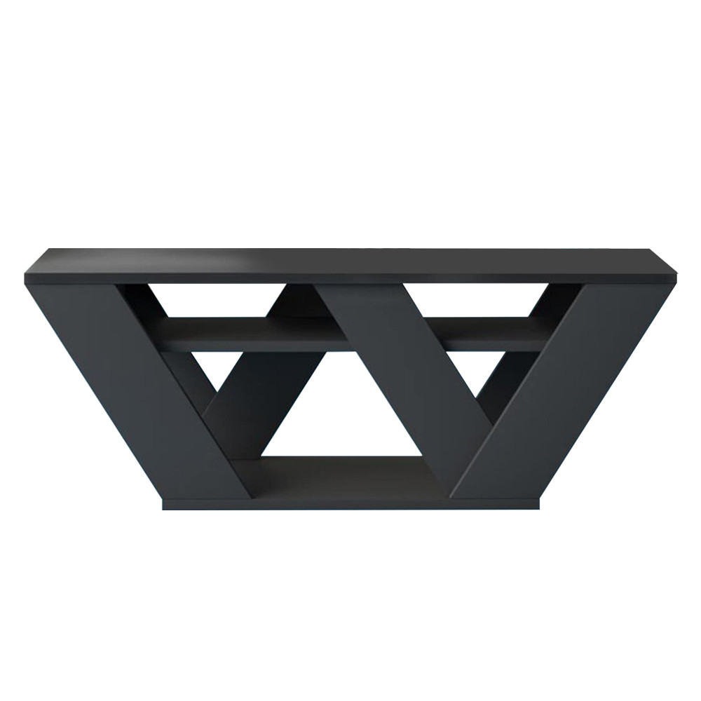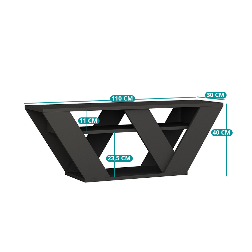 Antracitový TV stolík pridáva do vašej obývacej izby jedinečný, no čistý vzhľad. Jeho geometrické tvary vytvárajú modernú atmosféru a poskytujú stabilný základ pre vašu televíziu.