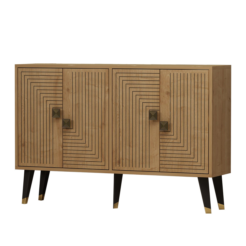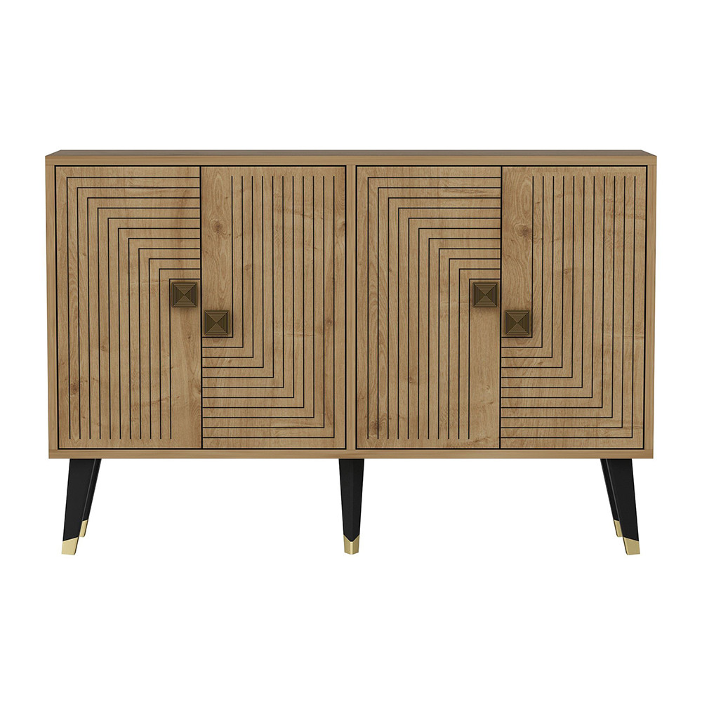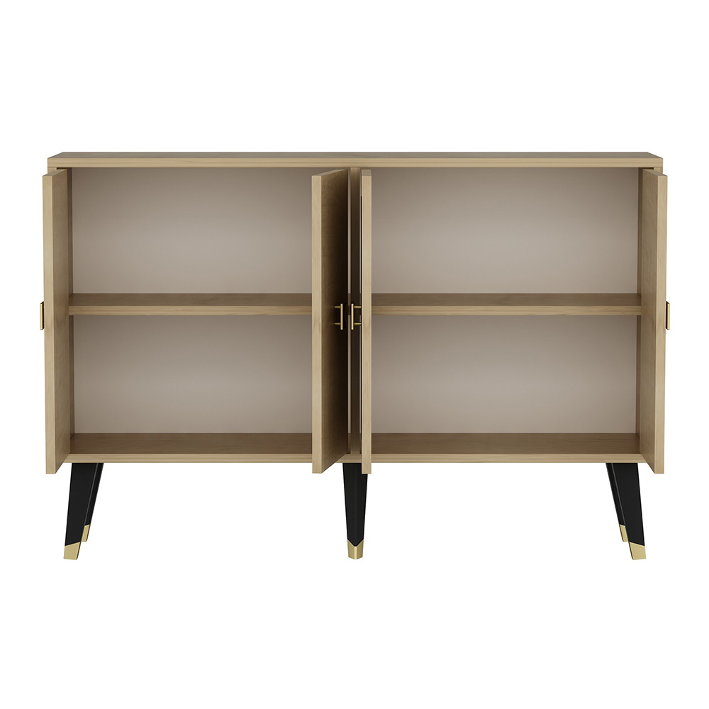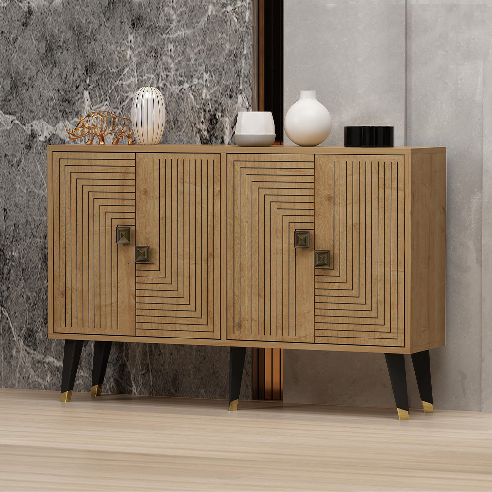Geometrické línie a zlaté detaily dodávajú nábytku jedinečný, prémiový efekt. Je to ideálna voľba, ak chcete skutočne štýlový interiér.