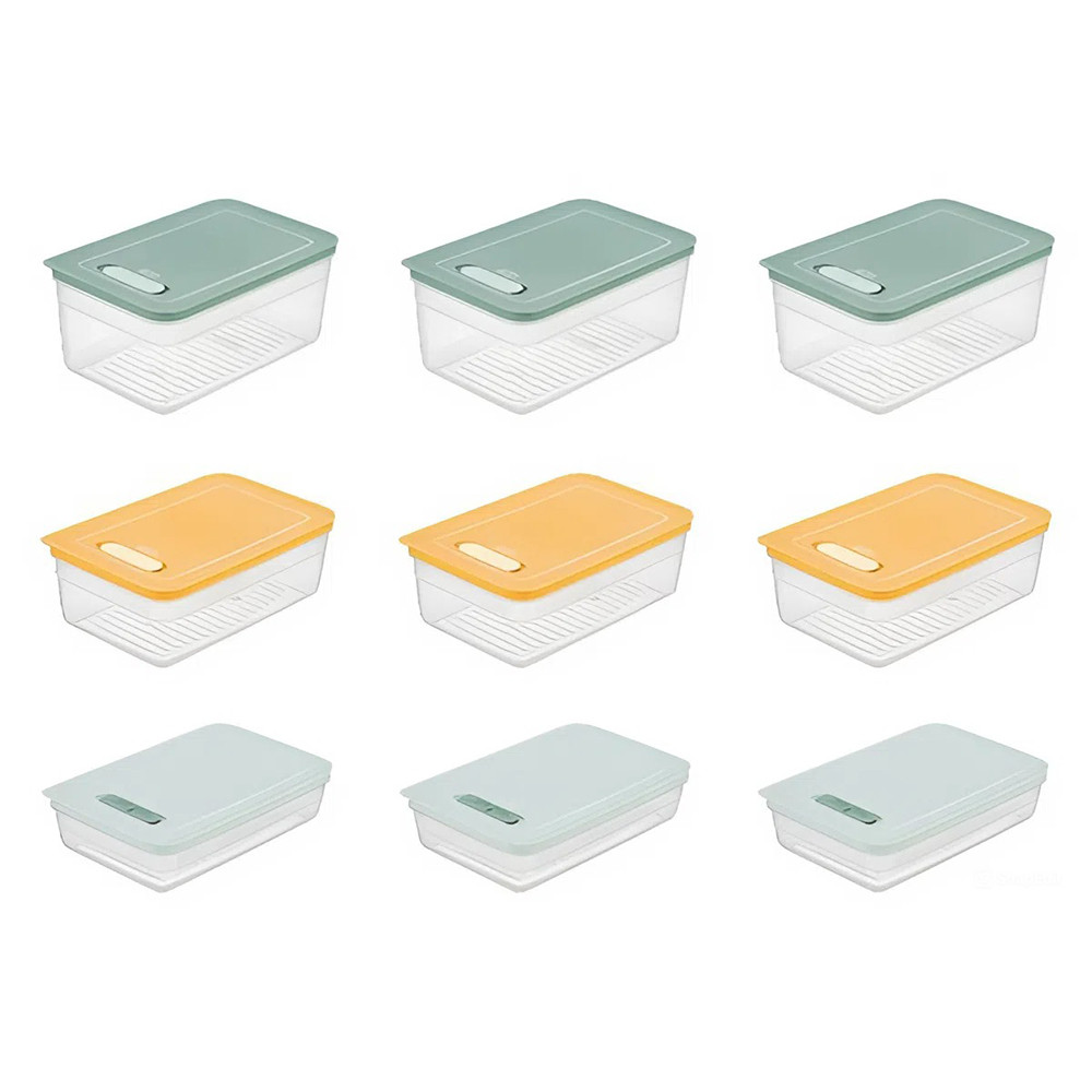 Tri rôzne veľkosti uľahčujú pohodlné skladovanie malých aj veľkých porcií. Keď sú naskladané, ponúkajú úsporné riešenie v chladničke.
