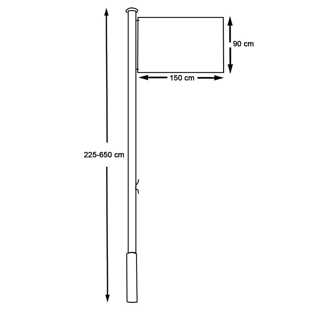Výšku stožiara je možné nastaviť v rozmedzí 225 až 650 cm, čo umožňuje jednoduché prispôsobenie požiadavkám konkrétneho miesta. Je ideálnou voľbou pre verejné inštitúcie, školy, administratívne budovy, ale výborne poslúži aj na súkromných podujatiach, napríklad v záhrade alebo na rôznych akciách.