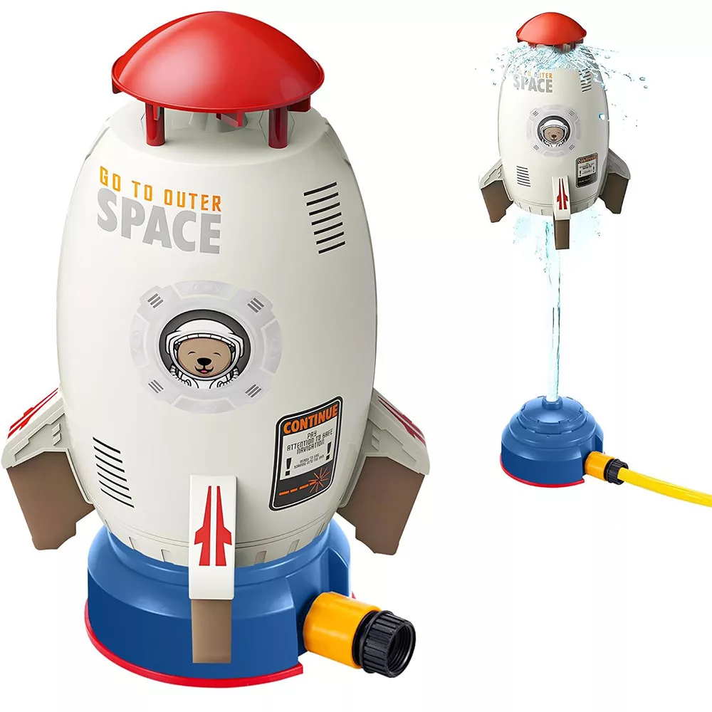 Stačí zostaviť odpaľovaciu základňu, pripojiť ju k záhradnému kohútiku a postupne pustiť vodu. Vďaka tlaku vody raketa vzlietne, otáča sa a rozprašuje vodu – nezabudnuteľný zážitok a fascinujúca atrakcia pre deti!