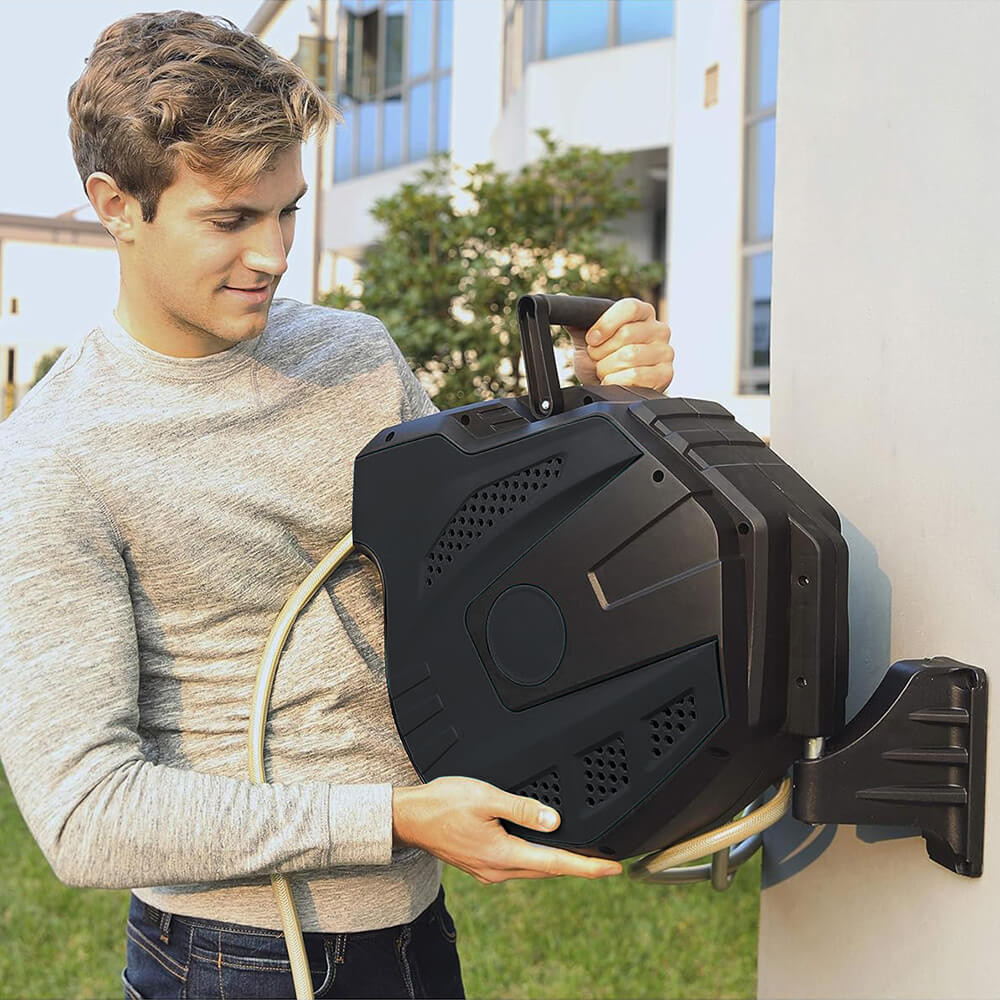 Integrovaný automatický navíjací mechanizmus uľahčuje uskladnenie hadice. Bezpečnostný uzamykací systém umožňuje zafixovať hadicu v požadovanej dĺžke, pričom jedným jednoduchým zatiahnutím sa zámok uvoľní a hadica sa automaticky navinie. Tento systém zabraňuje krčeniu alebo zauzľovaniu hadice.