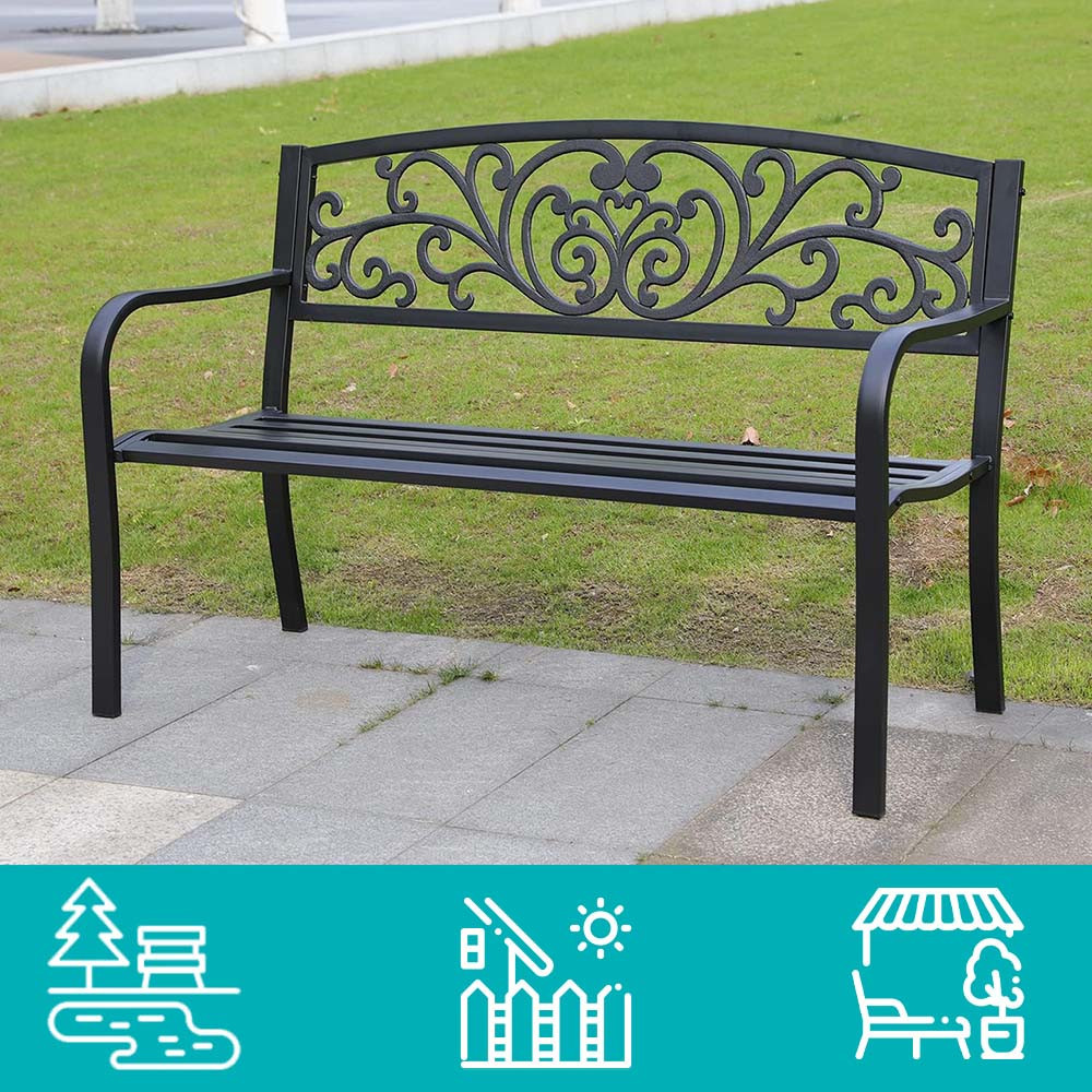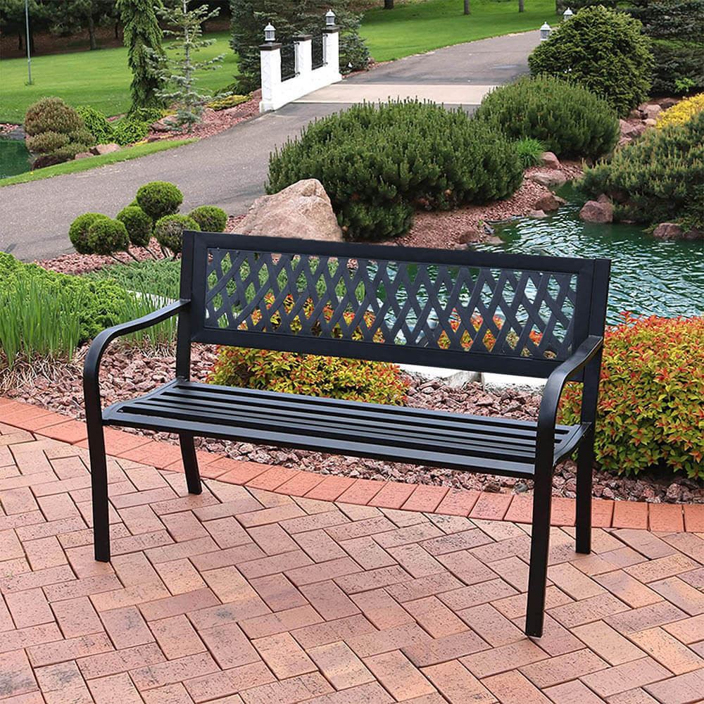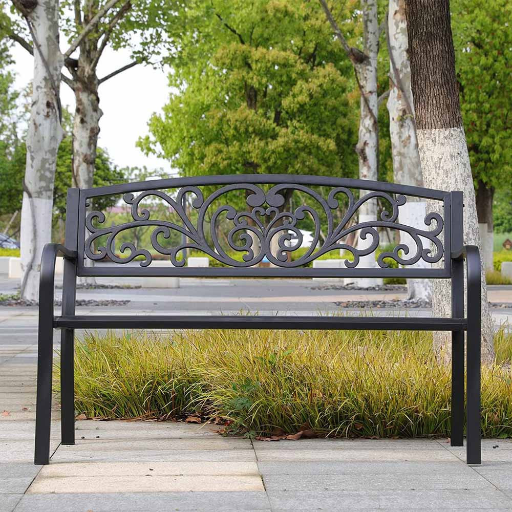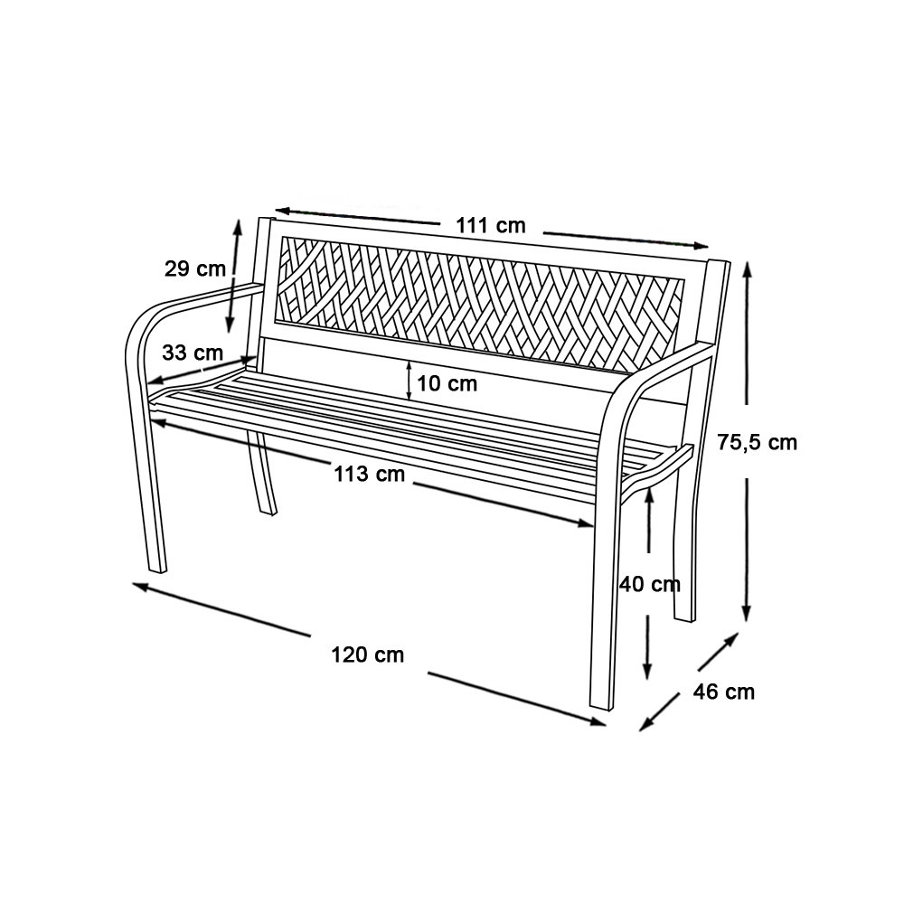 Čierna farba a mrežovaný operadlový dizajn reprezentujú elegantný, no nenápadný štýl, ktorý ľahko zapadne do každého vonkajšieho prostredia. Lavička je estetickým doplnkom záhrady a zároveň plní aj praktickú funkciu.