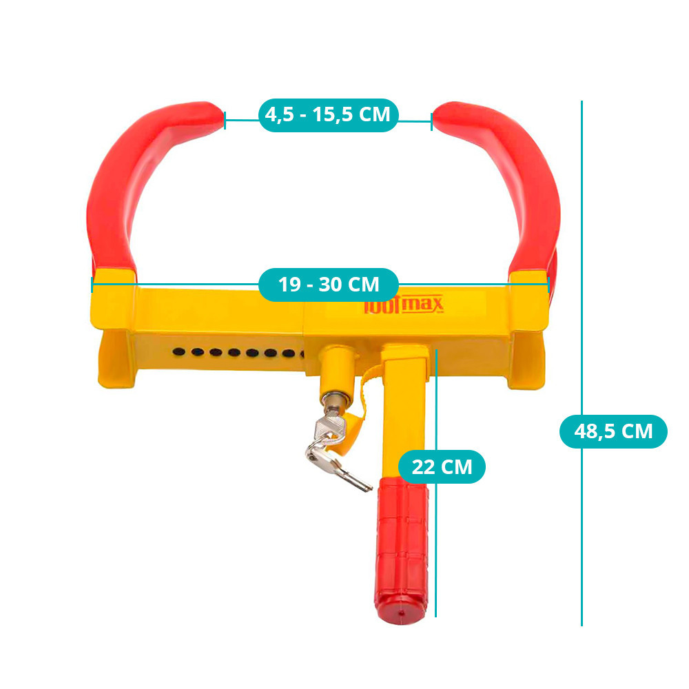 Zámok úplne obopína koleso, čím zabraňuje jeho otáčaniu alebo pohybu. Účinne odrádza od neoprávneného odťahovania alebo krádeže vozidla a zároveň slúži ako veľmi viditeľné varovanie pre potenciálnych zlodejov.